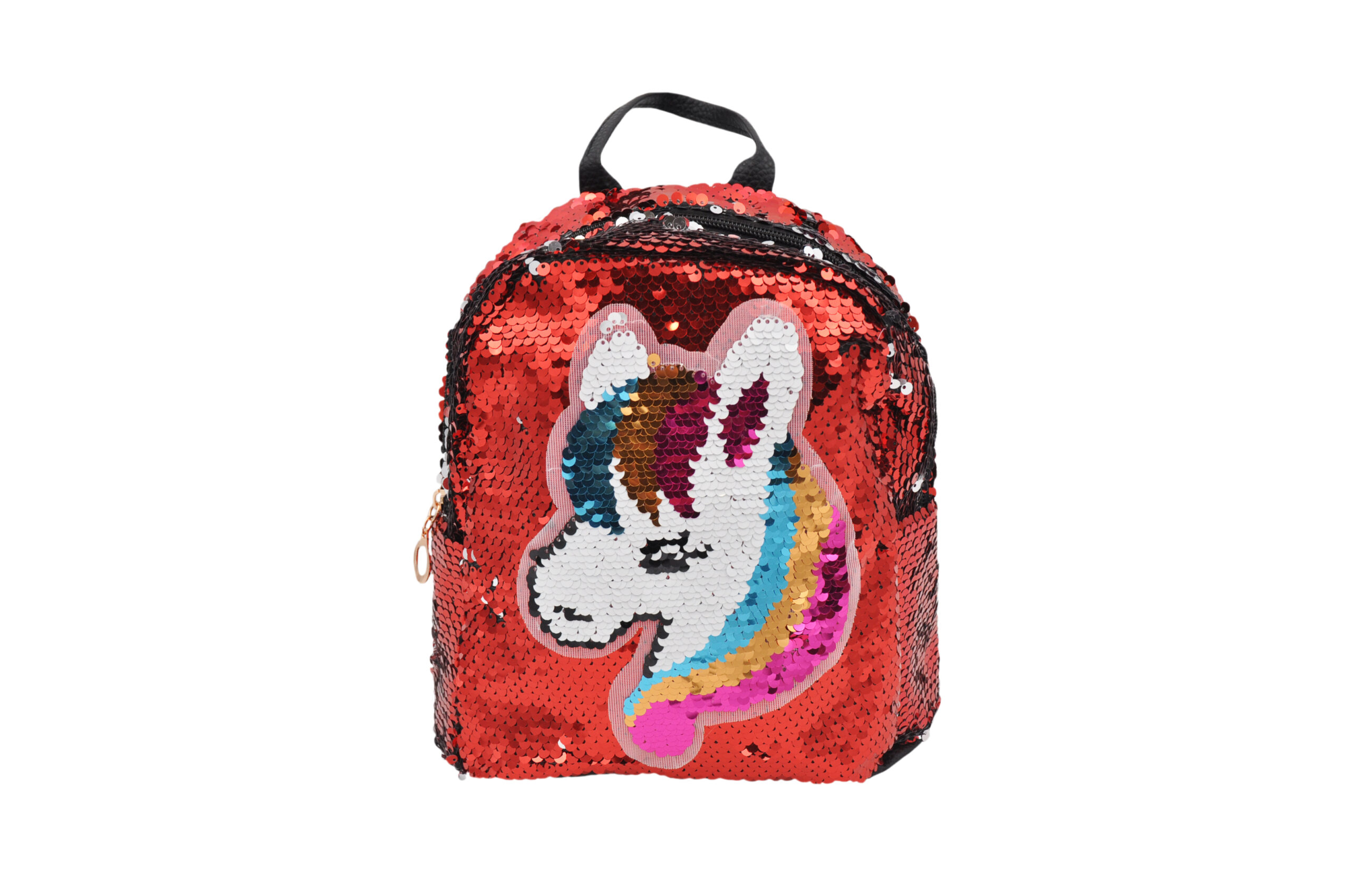 Zainetto con paillettes unicorno, disponibile rosso, fucsia, oro e multicolor, vendita singola, prezzo al pezzo