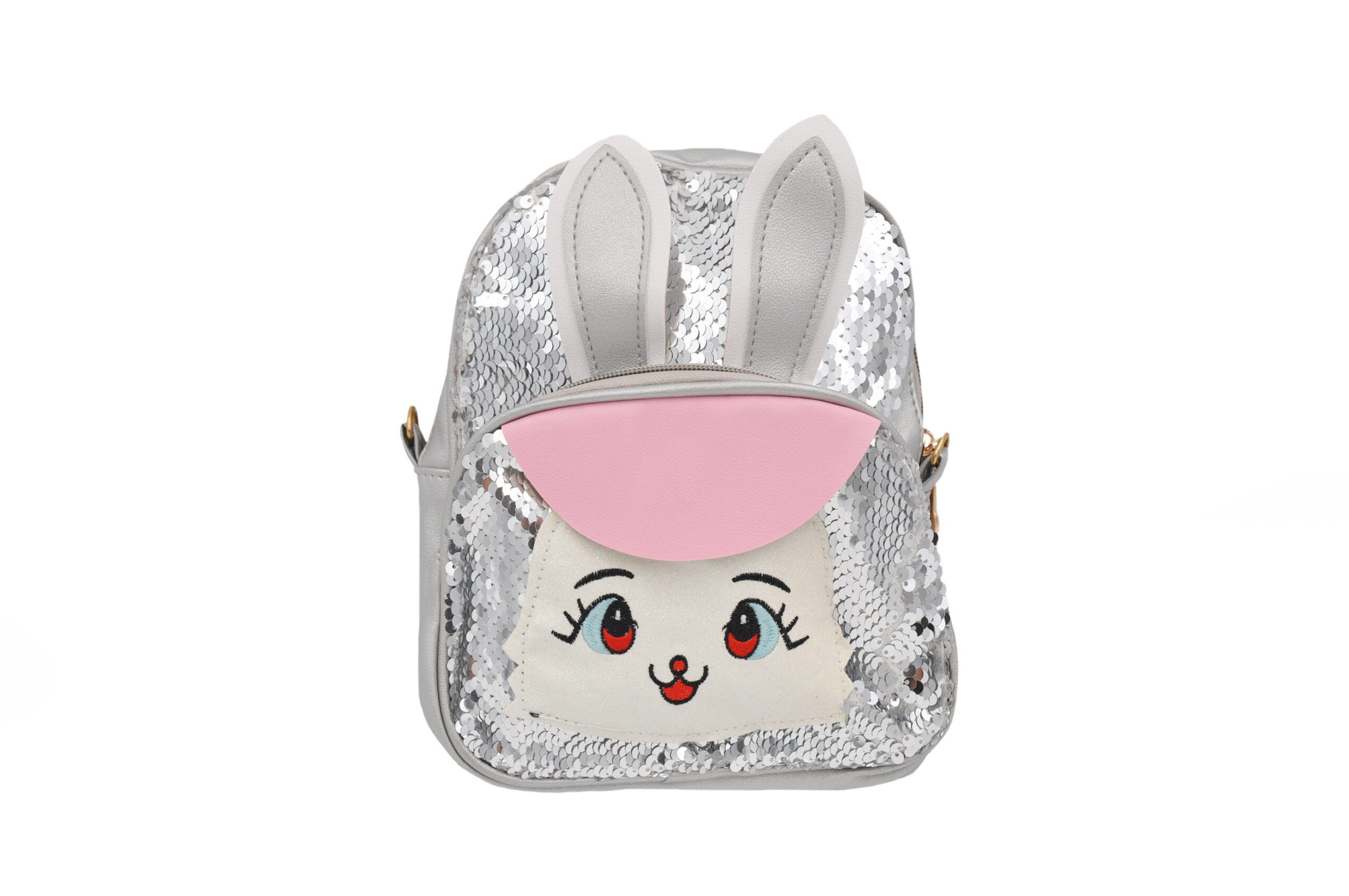 Zainetto con paillettes coniglietto, disponibile argento, rosso, fucsia, azzurro, nero, rosa e salmone vendita singola, prezzo al pezzo