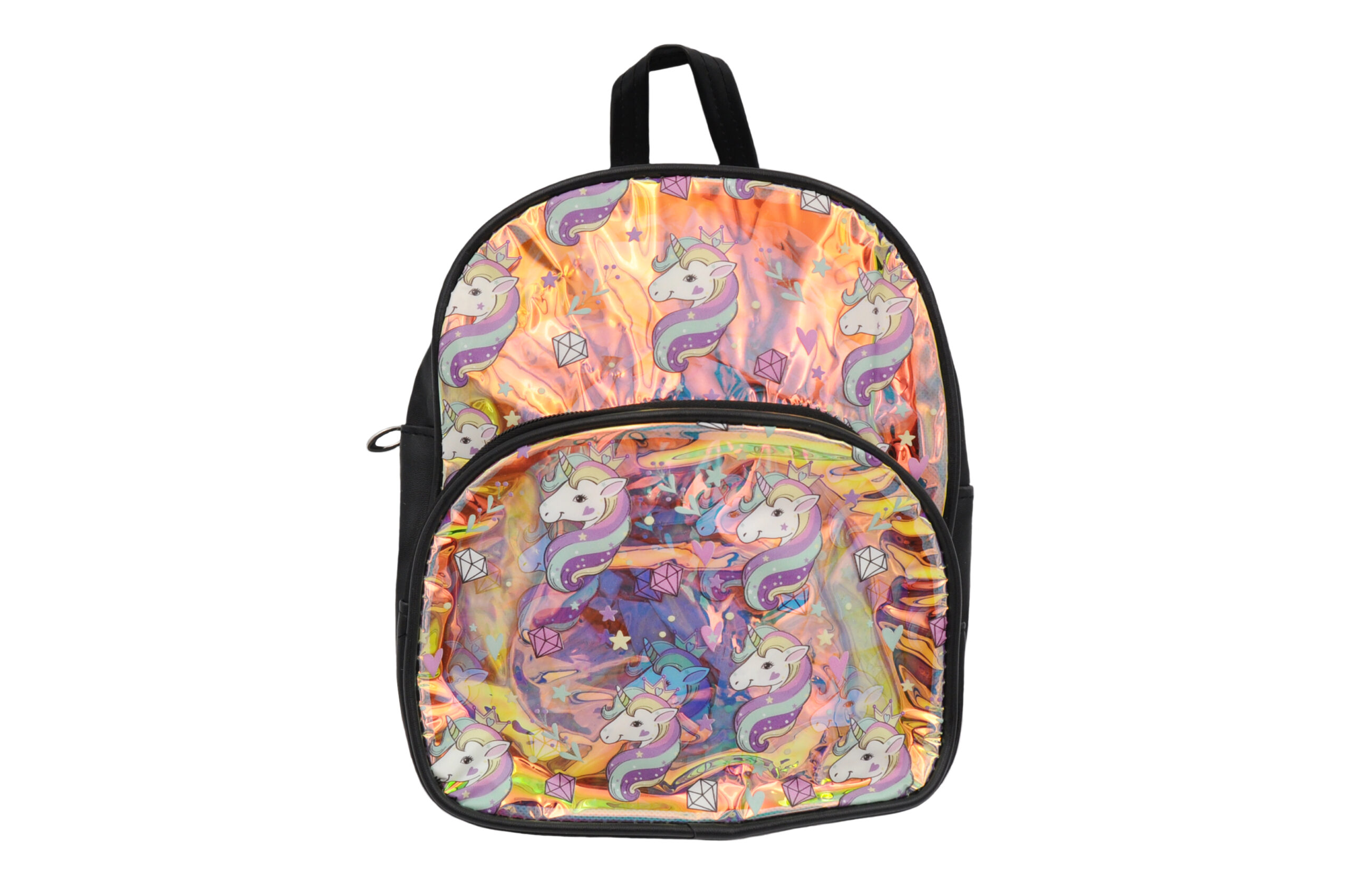 Zainetto cangiante con unicorno, disponibile nero, argento, rosso e fucsia vendita singola, prezzo al pezzo
