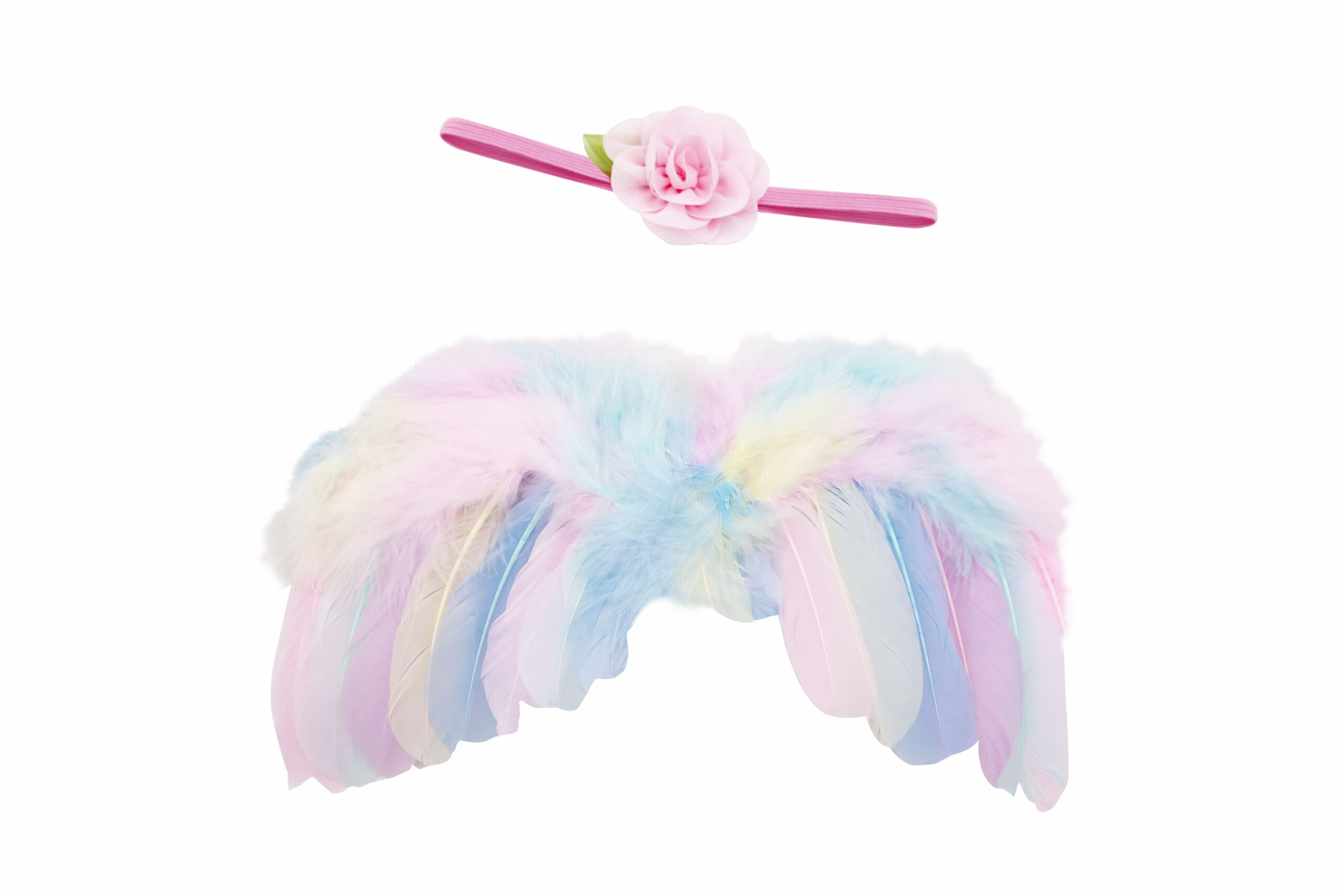 Set prime foto multicolor con ali e fascia con fiore, vendita singola, prezzo al pezzo