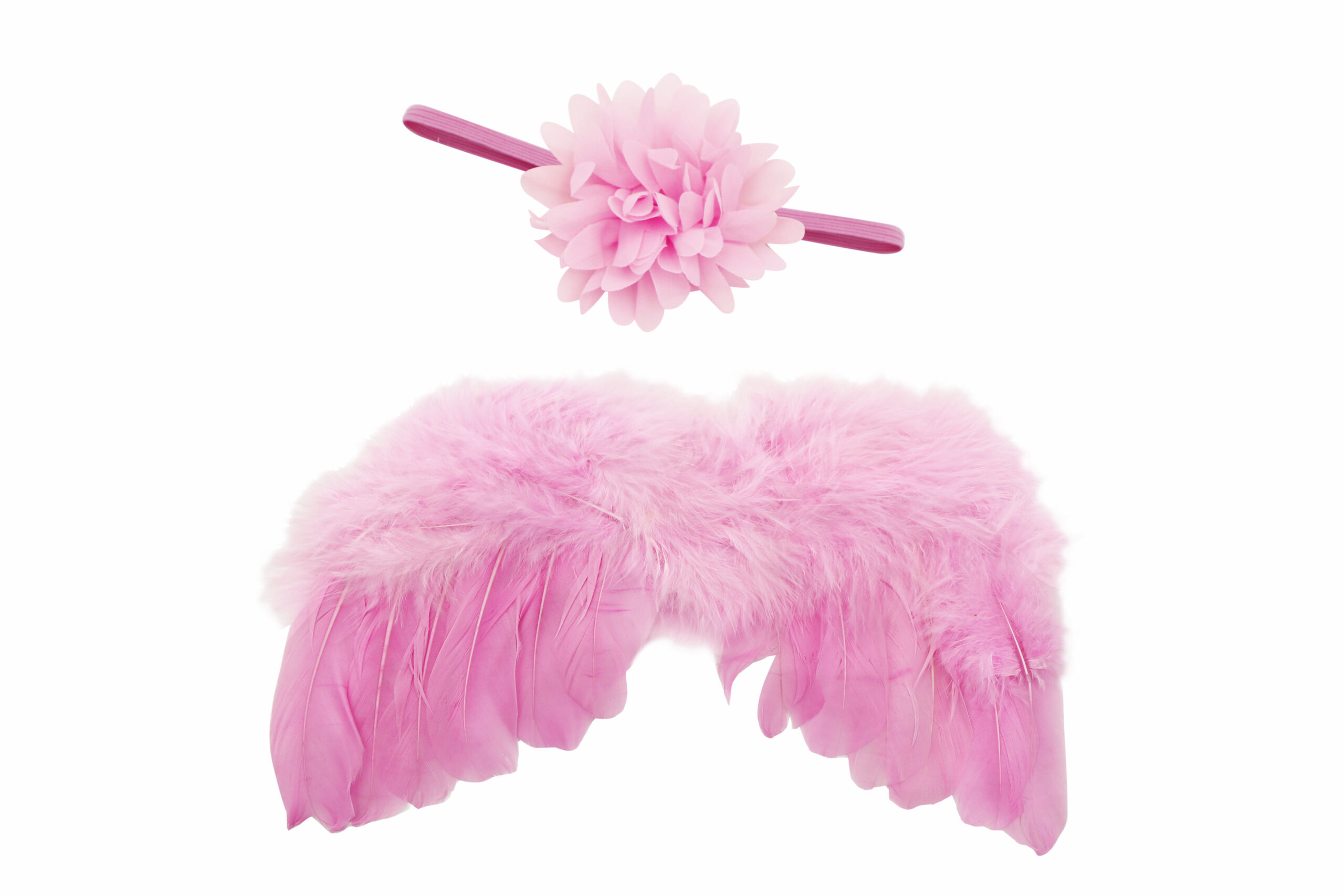 Set prime foto con ali e fascia con fiore, disponibile rosa o bianco vendita singola, prezzo al pezzo
