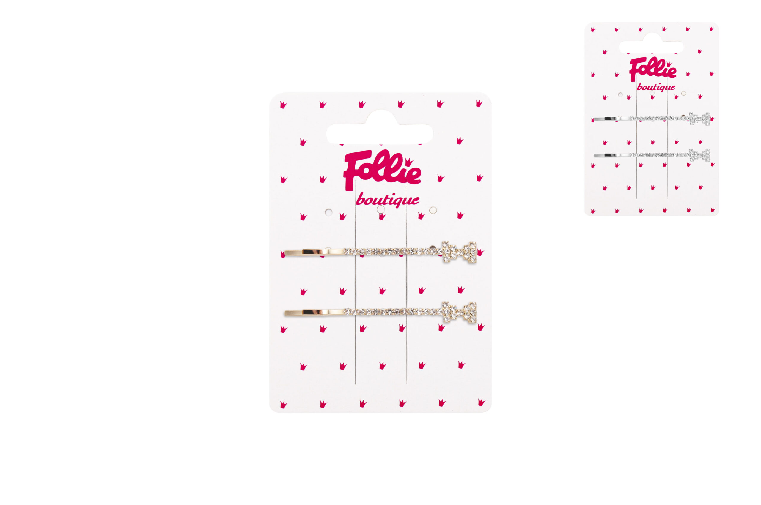 Card 2 mollette strass con fiocco colori assortiti, confezione 4 card, prezzo a card