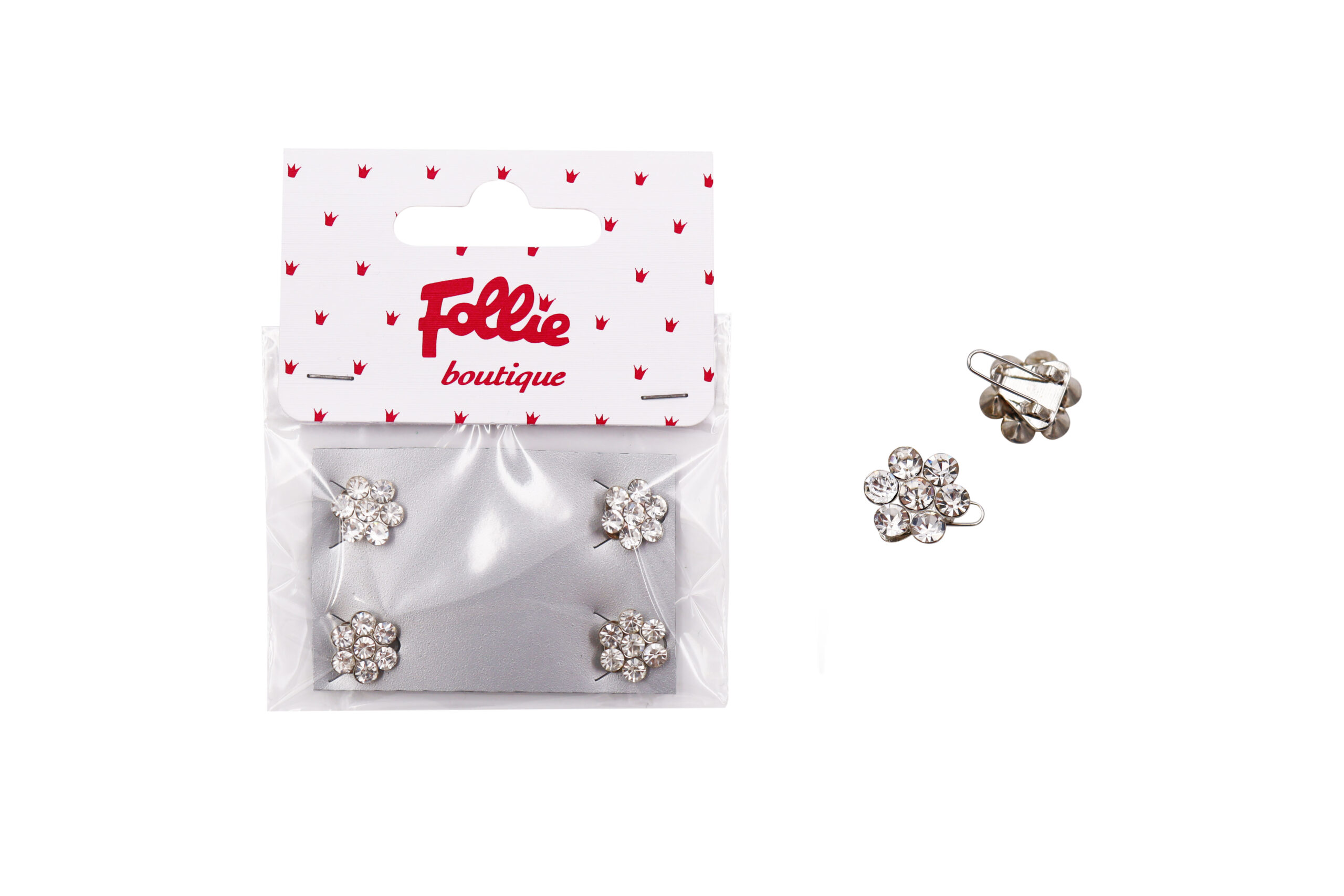 Card 4 piercing per capelli fiore strass, confezione 3 card, prezzo a card