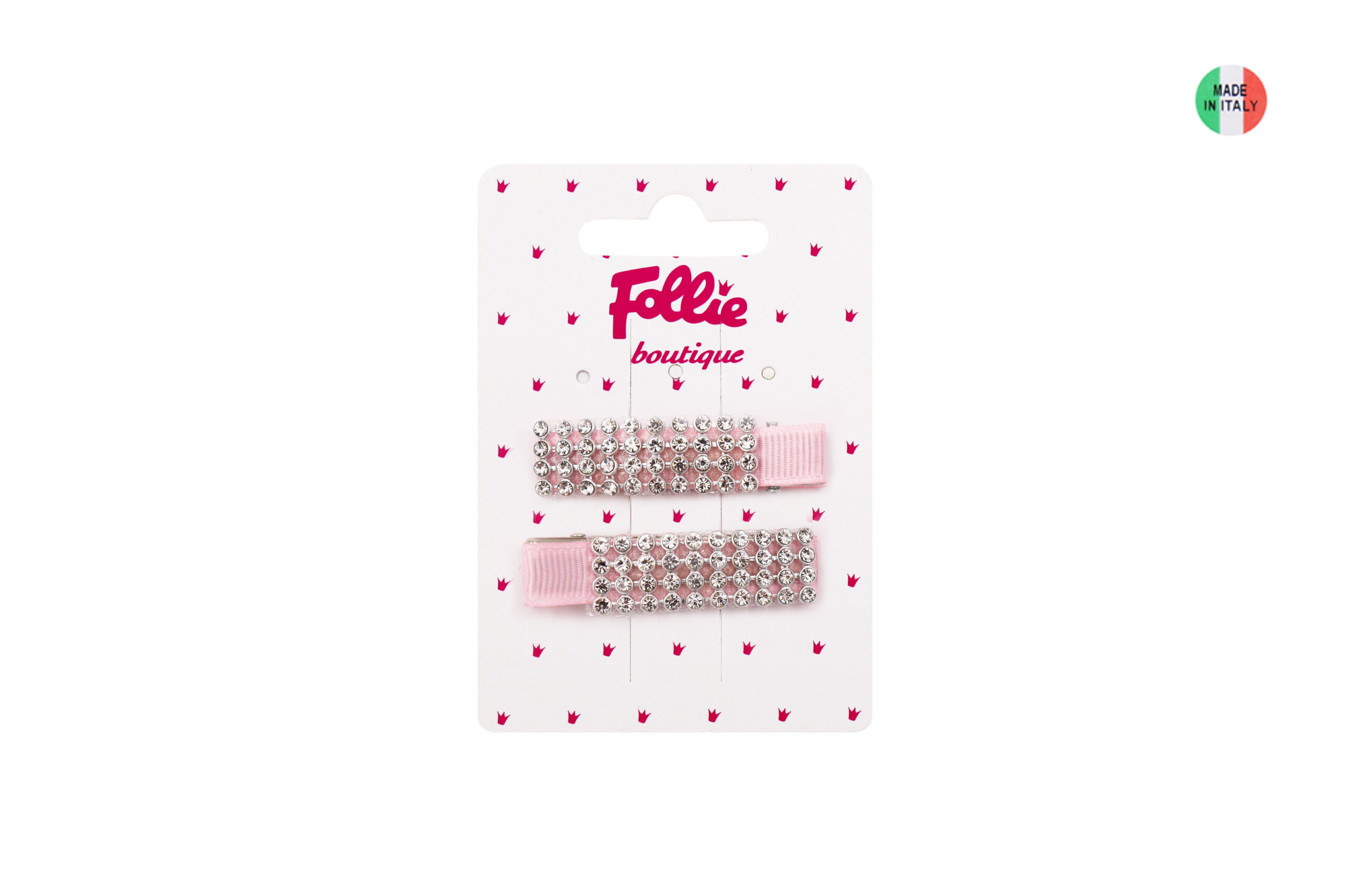 Card 2 mollette strass con fiocco colori assortiti, confezione 4 card, prezzo a card