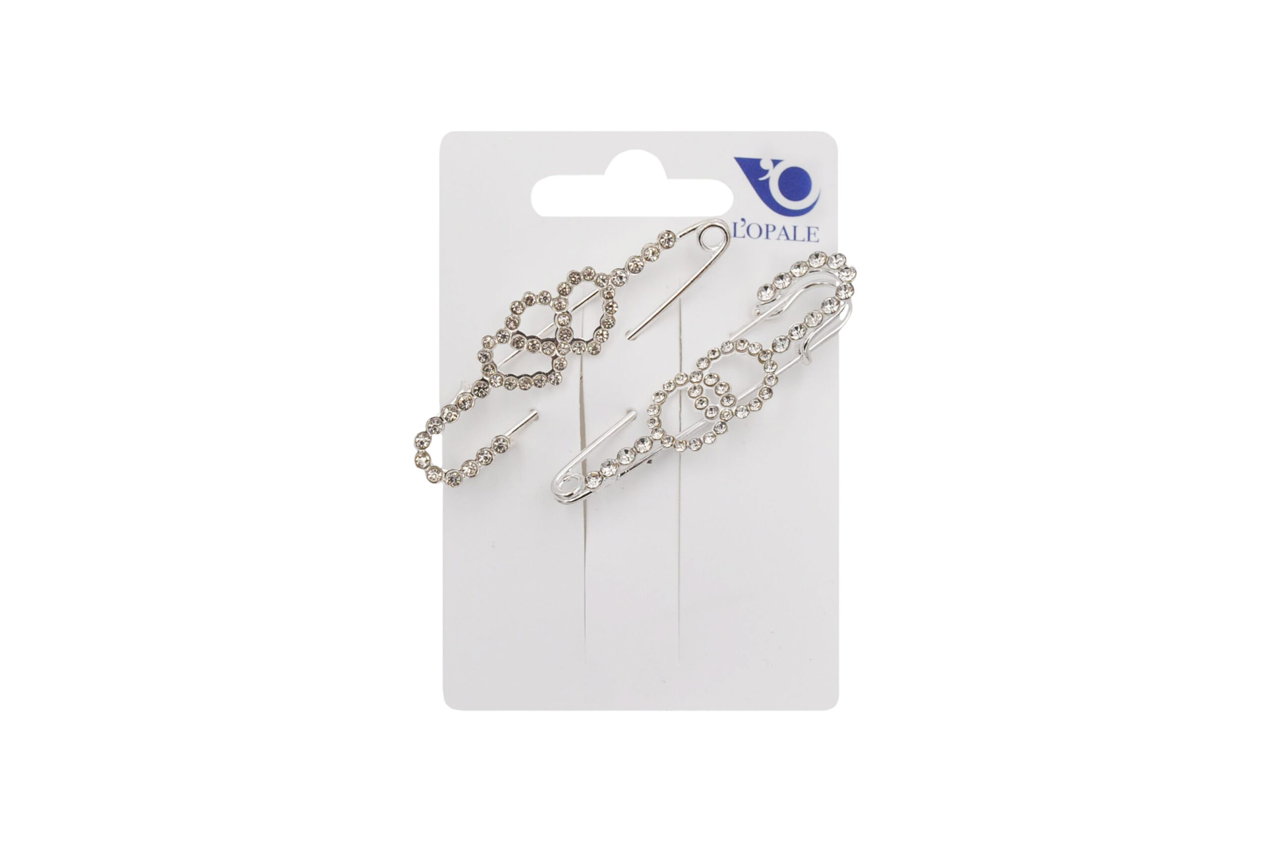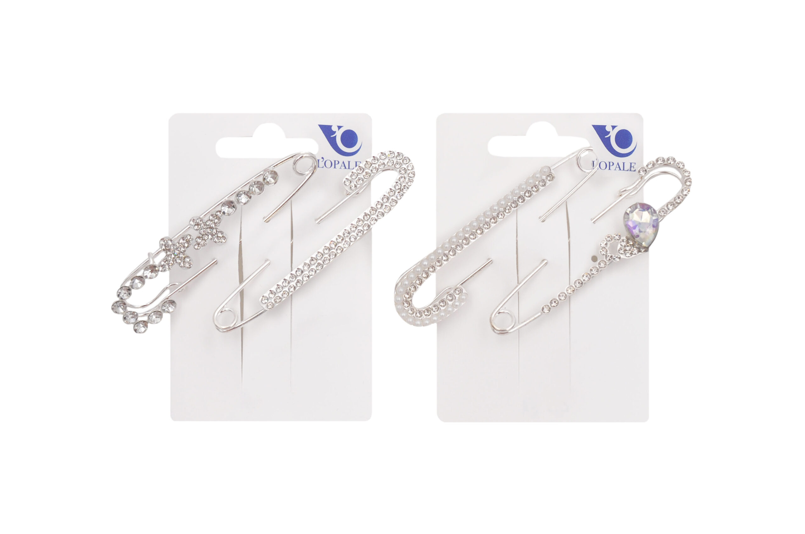 Card due spille da balia in metallo e vetro, confezione 3 card modelli assortiti, lunghezza 6 cm