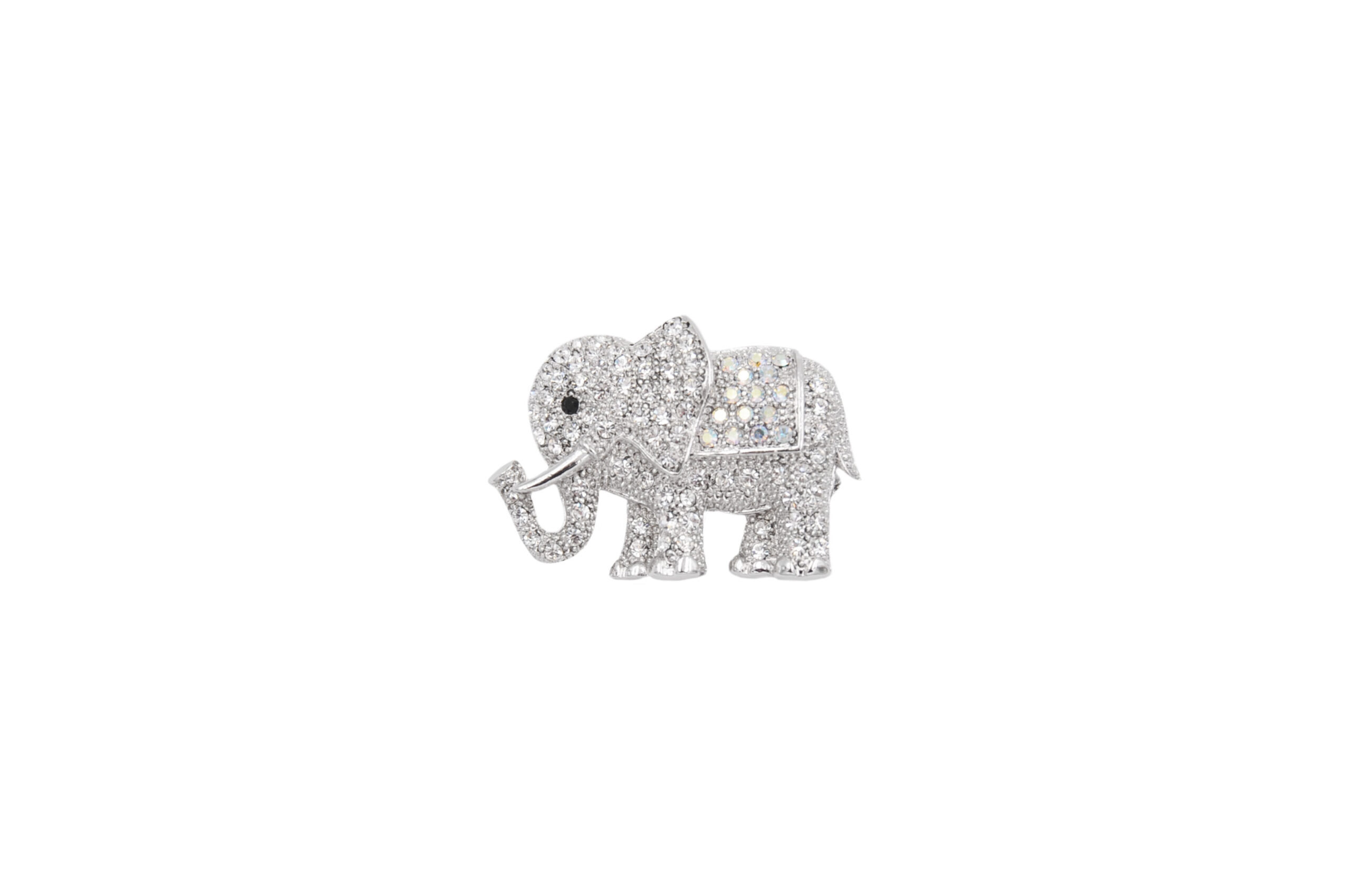 Spilla rodio elefante strass in metallo e vetro, misure 4 x 3 cm, sacchetto in organza incluso