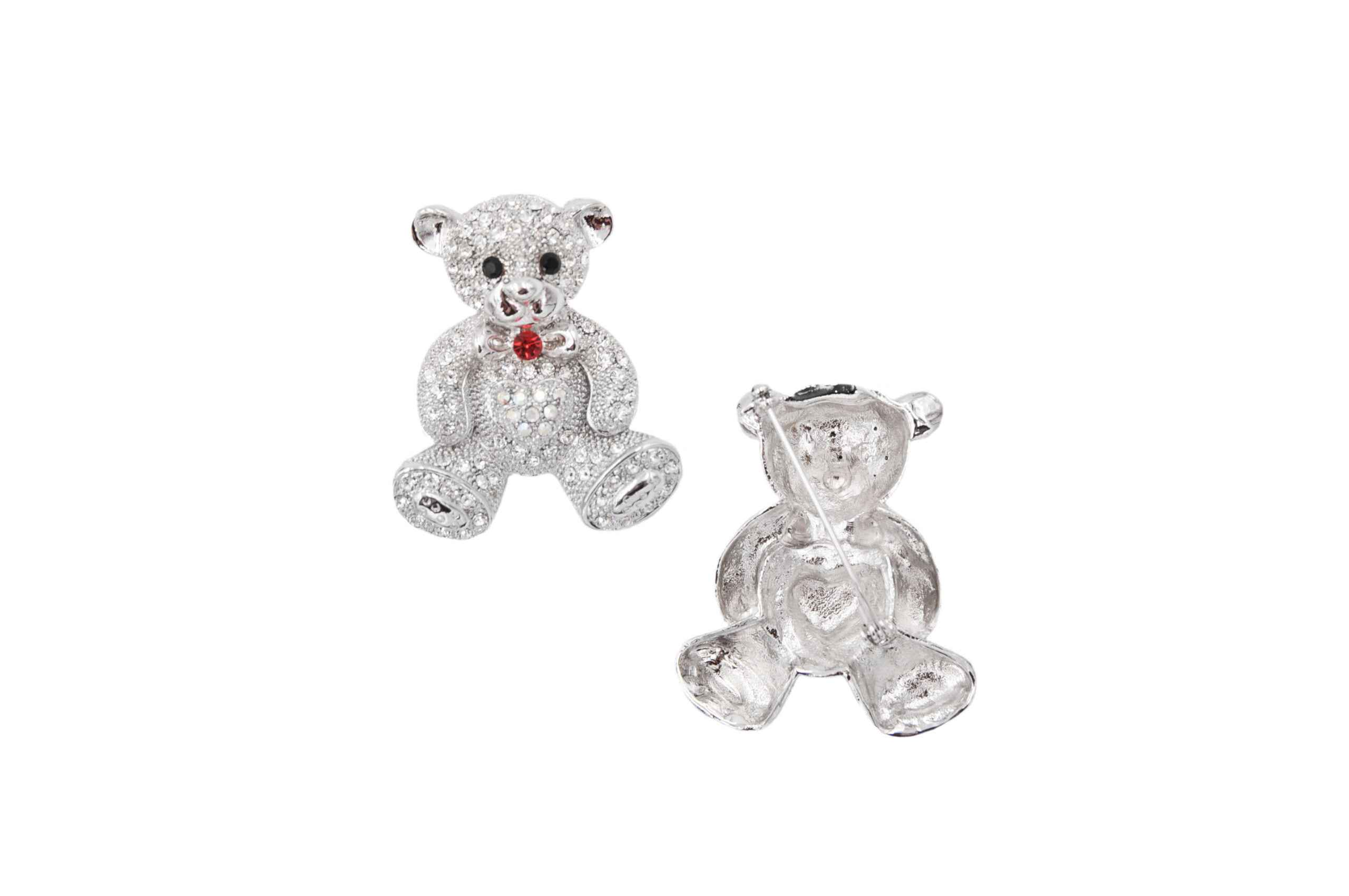 Spilla rodio orso strass in metallo e vetro, misure 4 x 4,5 cm, sacchetto in organza incluso