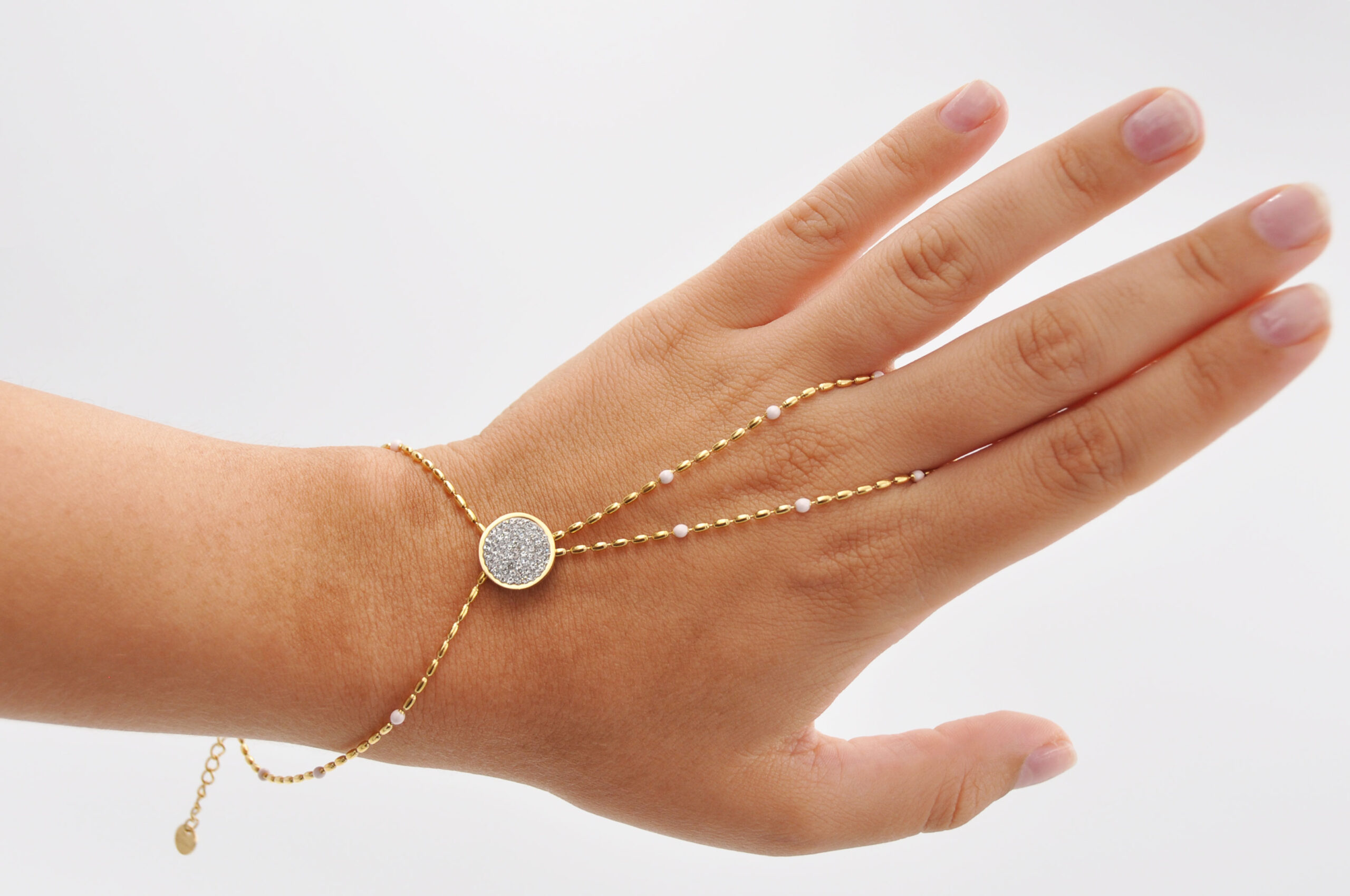 Bracciale baciamano oro con strass in metallo e vetro, confezione 3 pezzi, sacchetto in organza incluso