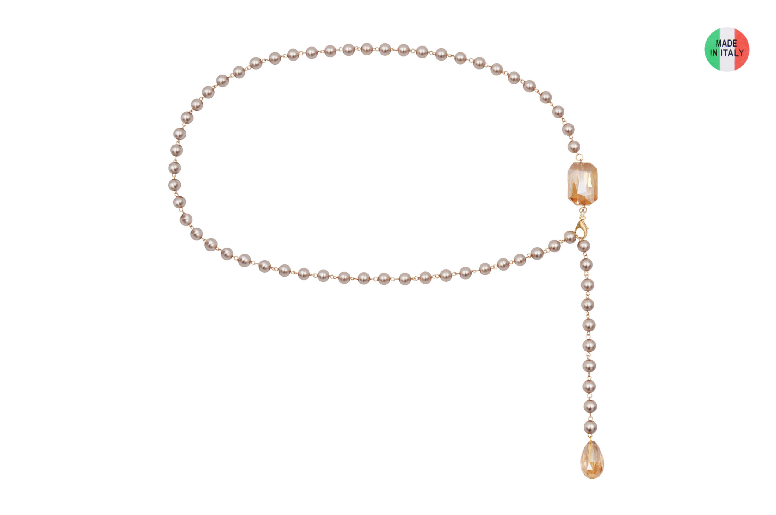 Cintura con perle e cristalli in plastica, metallo e vetro, sacchetto in organza incluso