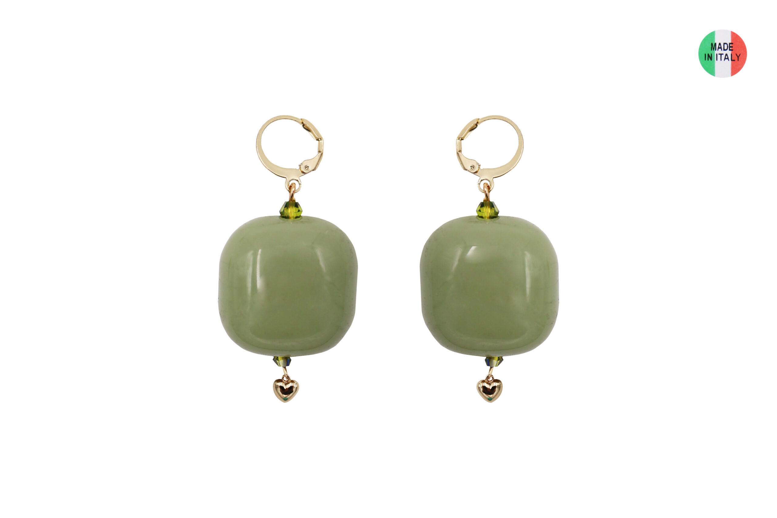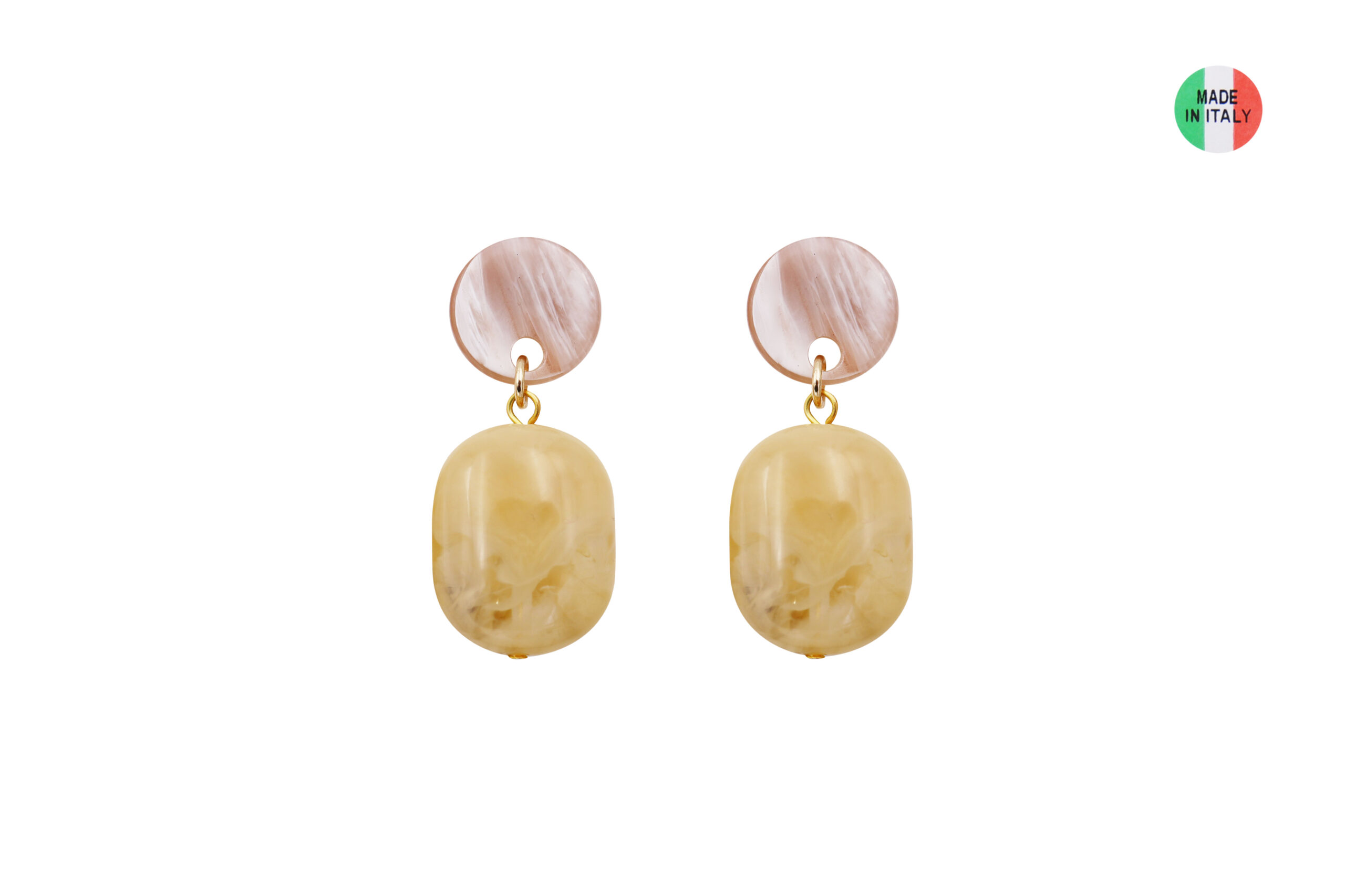Orecchino perno con particolare in resina, lunghezza 4,5 cm, sacchetto in organza incluso