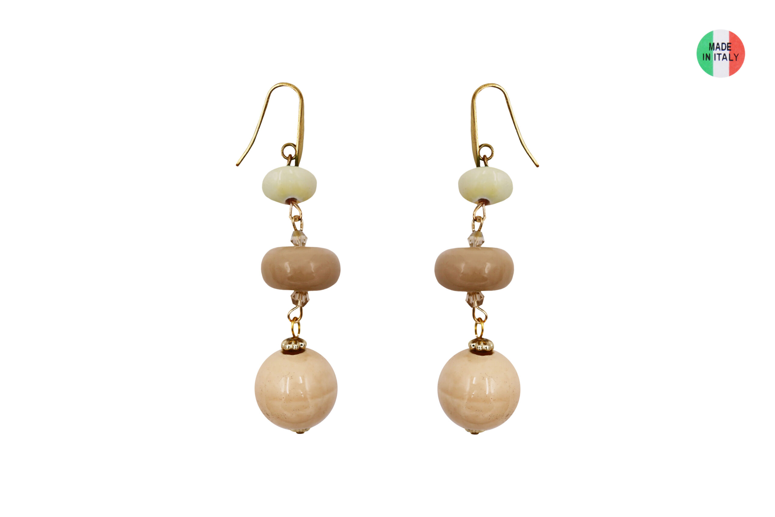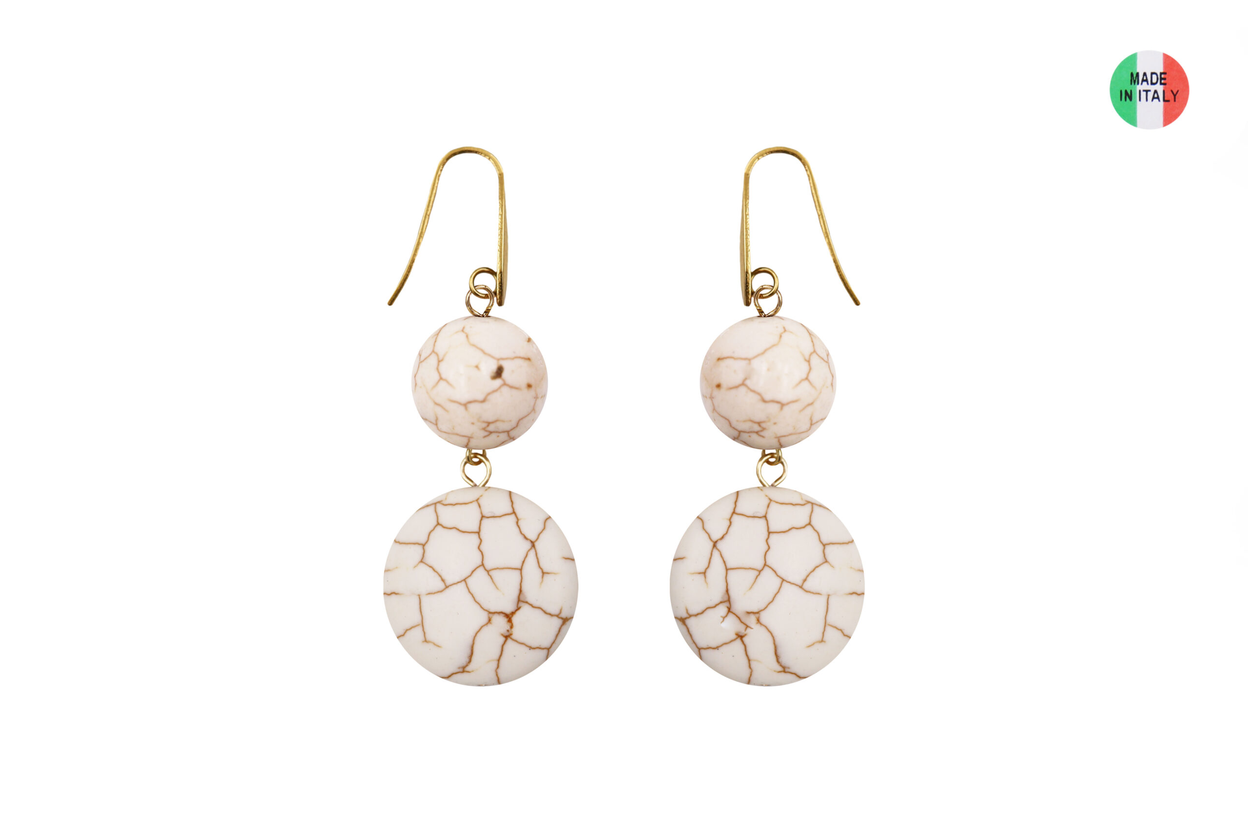 Orecchino amo con particolari in pietra e acciaio, disponibile beige o azzurro, lunghezza 6 cm, sacchetto in organza incluso