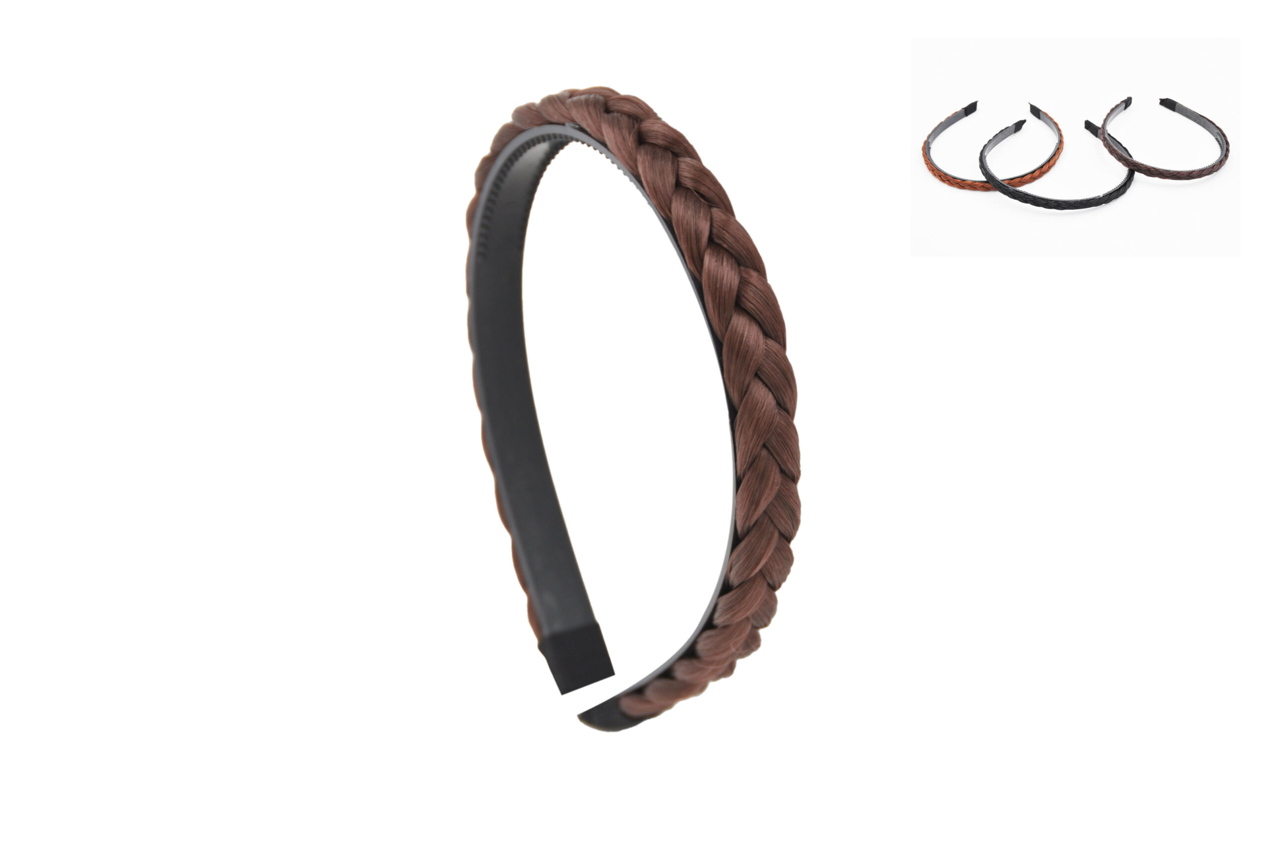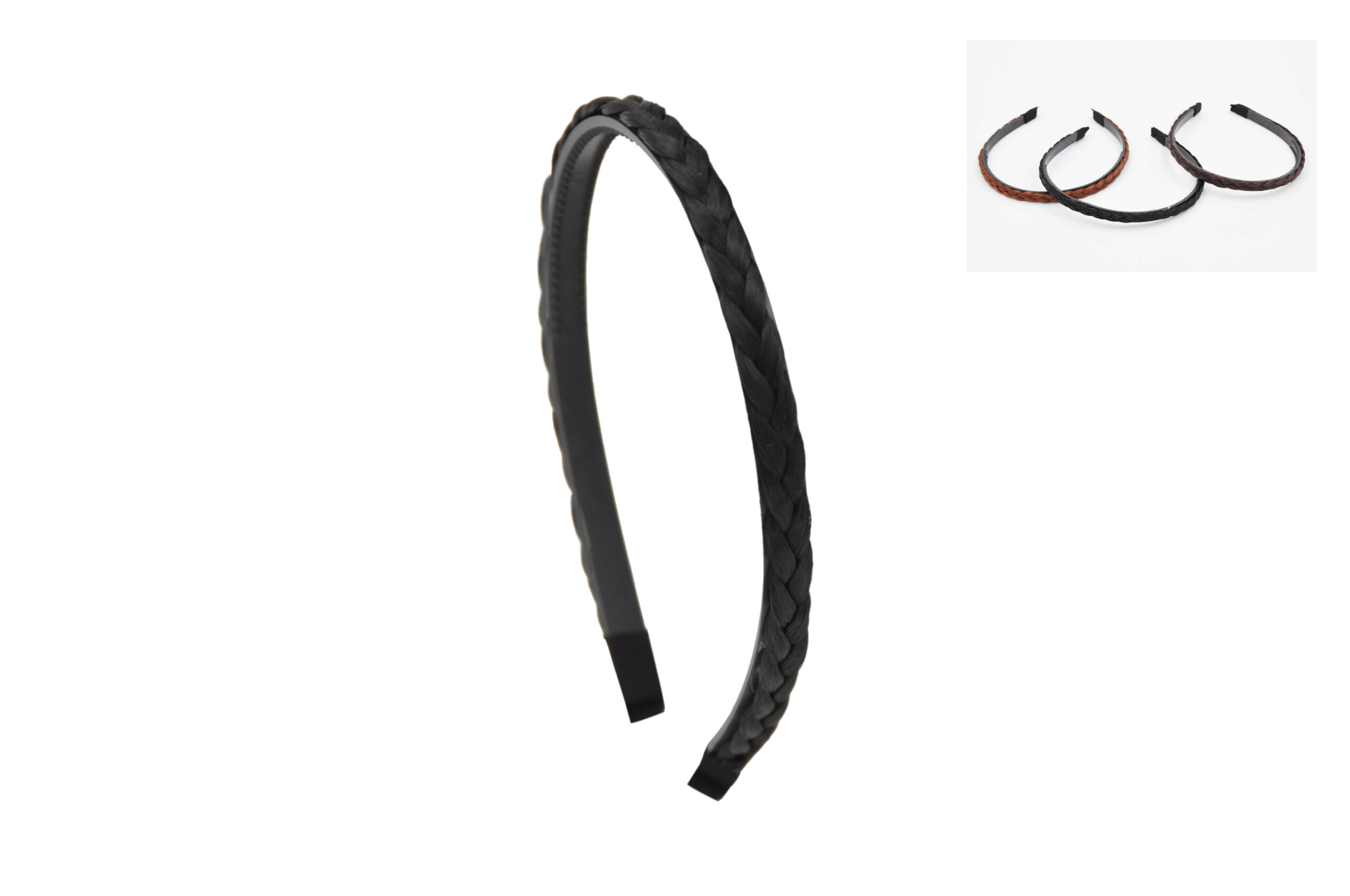 Cerchietto con treccia sintetica, confezione 3 pezzi, colori assortiti, dimensione 1 cm, prezzo al pezzo