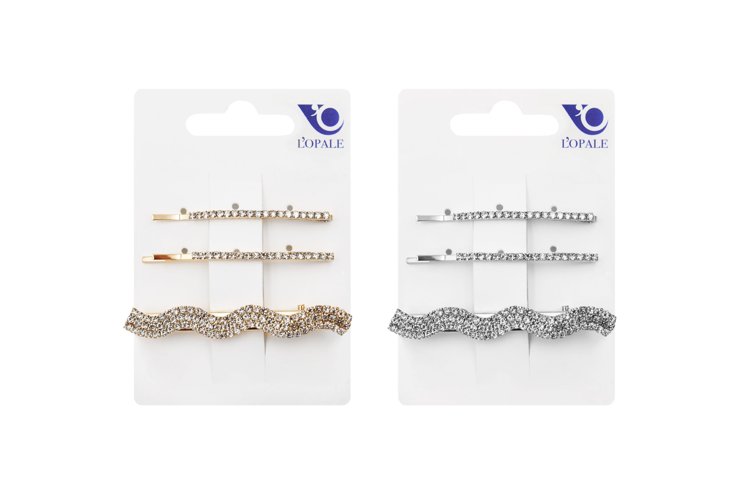 Blister 2 becchi per capelli strass, confezione 3 blister, dimensione 8 cm, prezzo a blister
