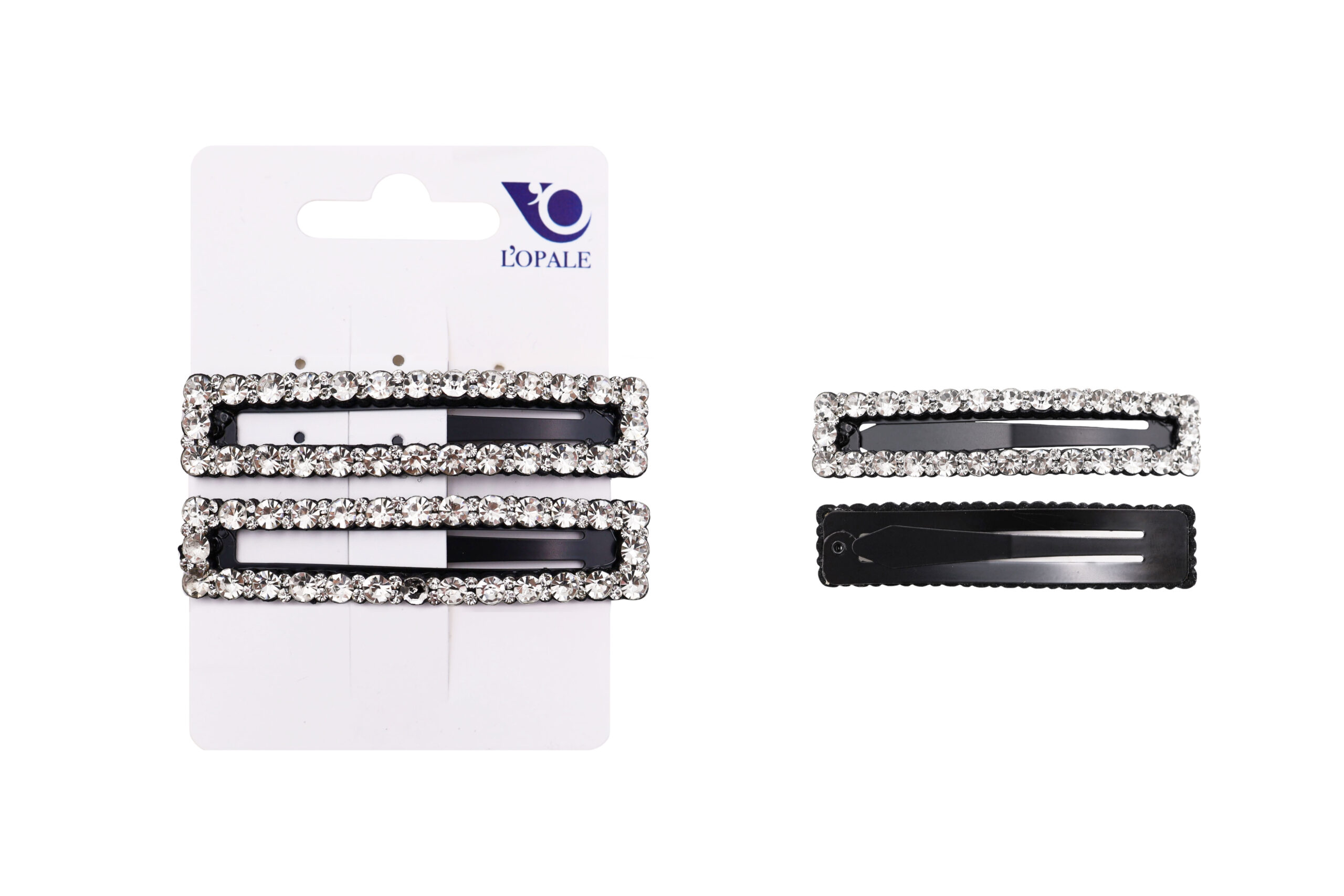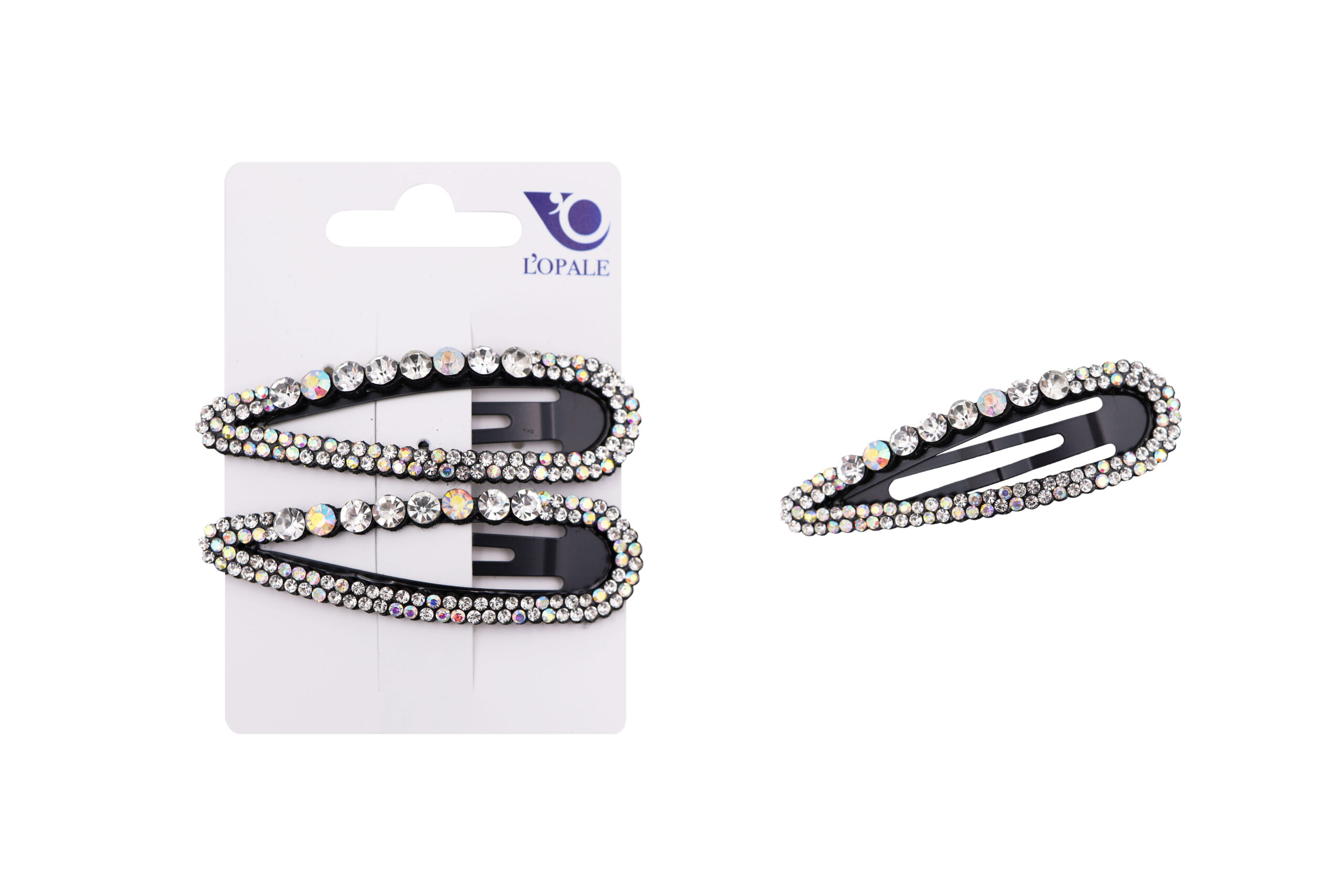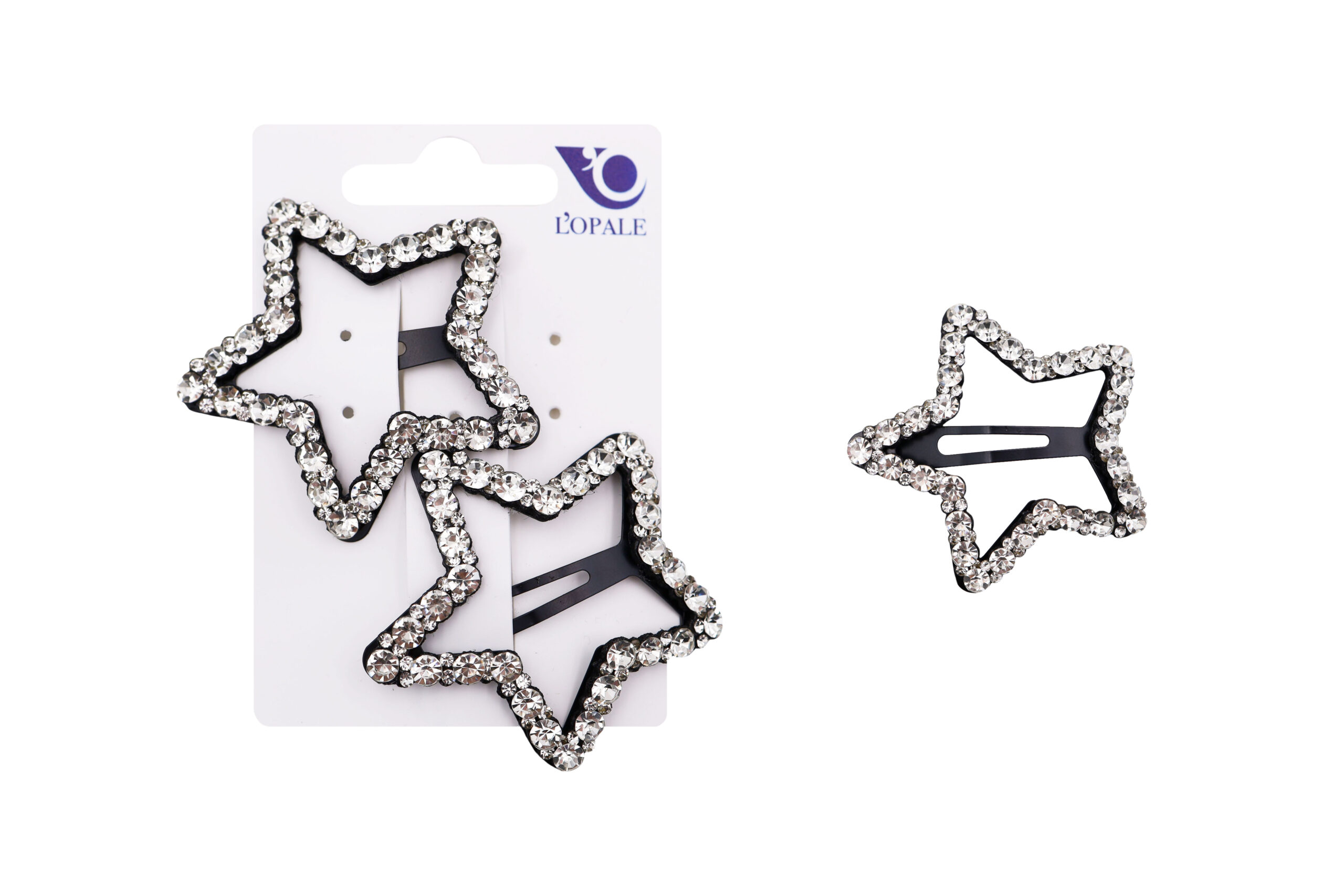 Blister 2 click clack per capelli con strass, confezione 3 blister, dimensione 7 cm, prezzo a blister
