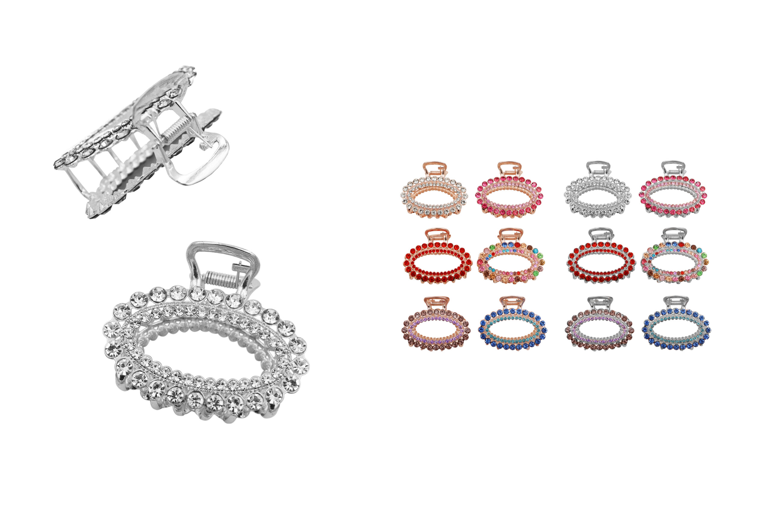 Pinza per capelli con strass, confezione 3 pezzi, dimensione 6 cm, prezzo al pezzo