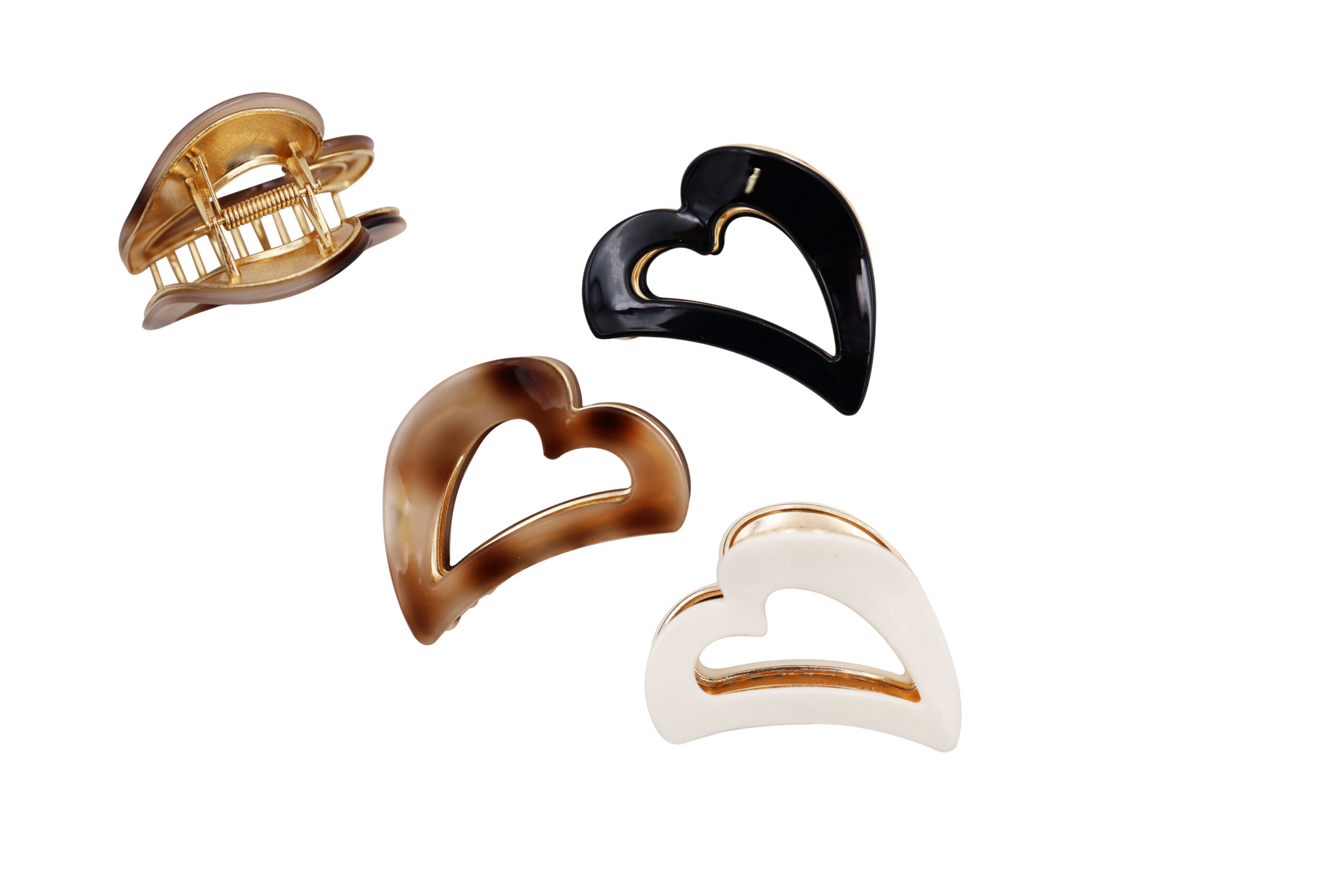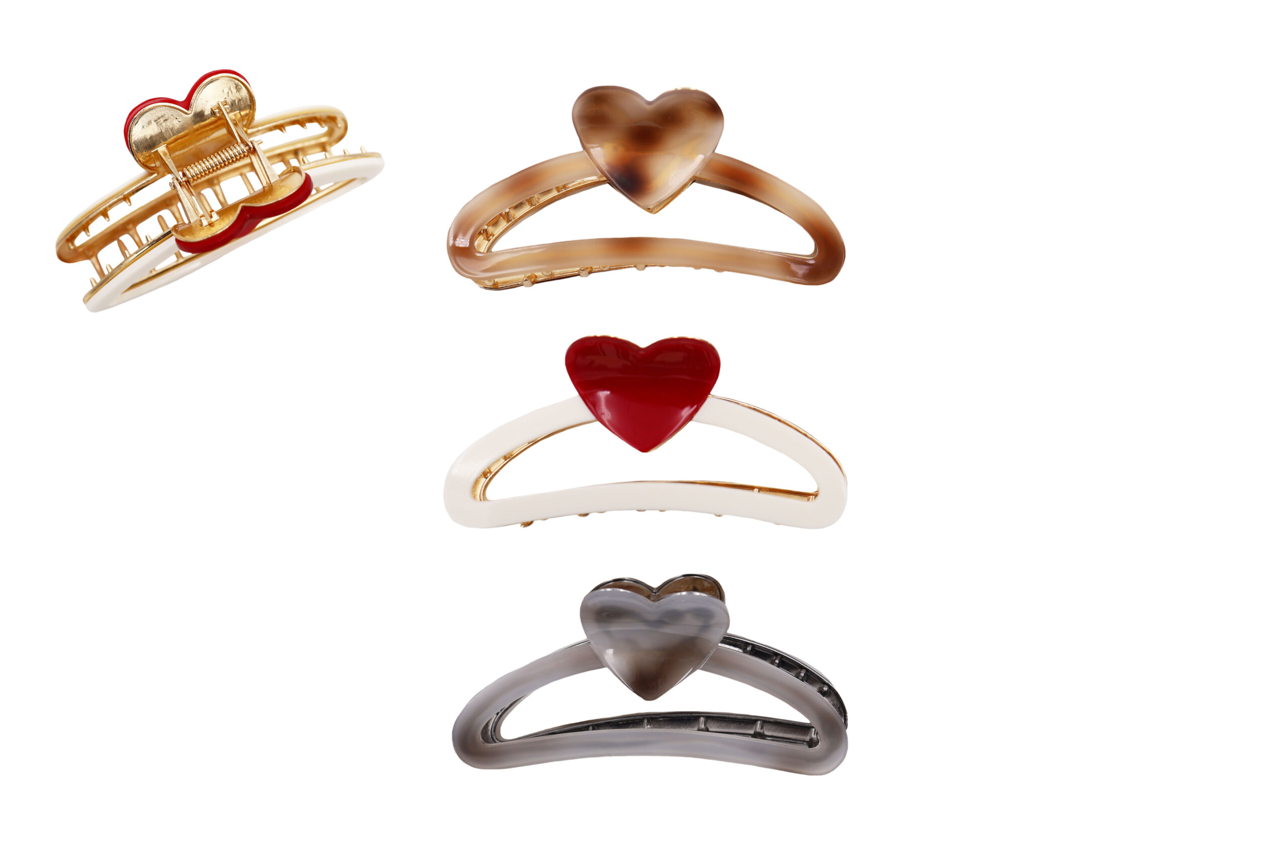 Pinza cuore per capelli in plastica, confezione 3 pezzi, dimensione 7 cm, prezzo al pezzo