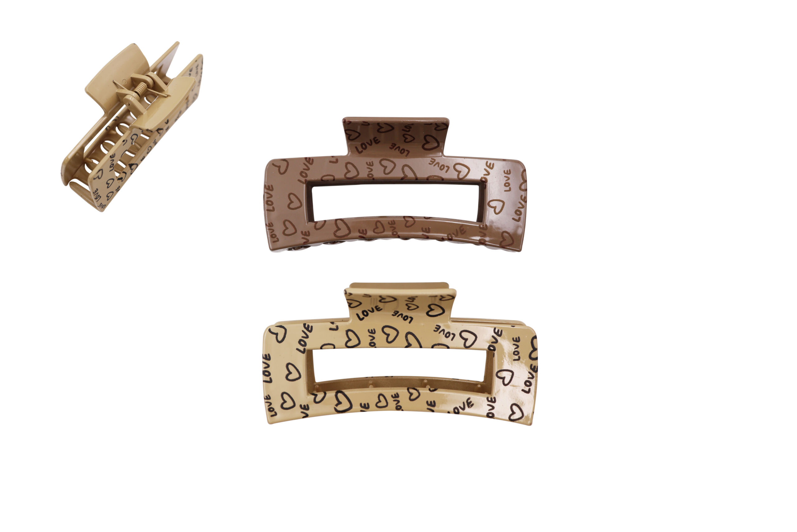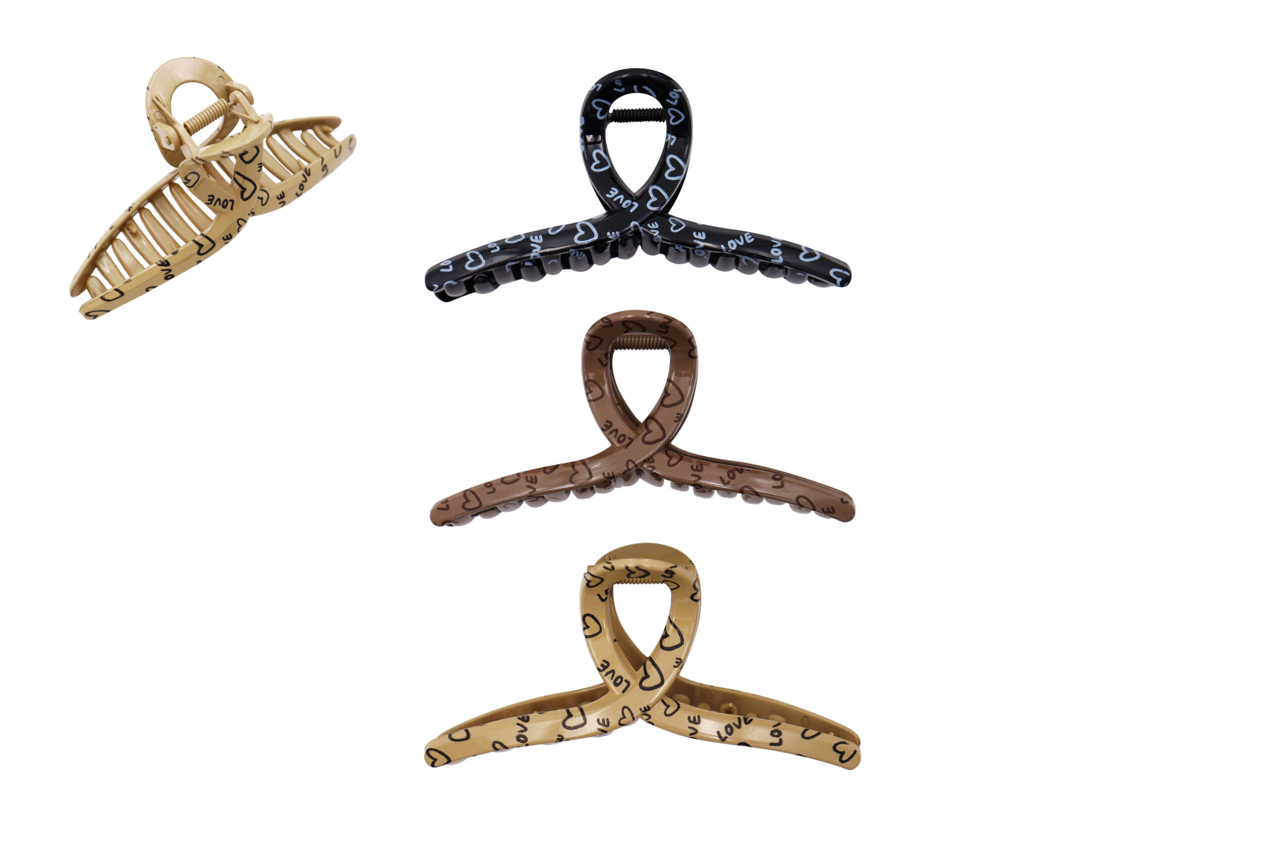 Pinza per capelli in plastica con cuori, confezione 3 pezzi colori assortiti, dimensione 12 cm, prezzo al pezzo