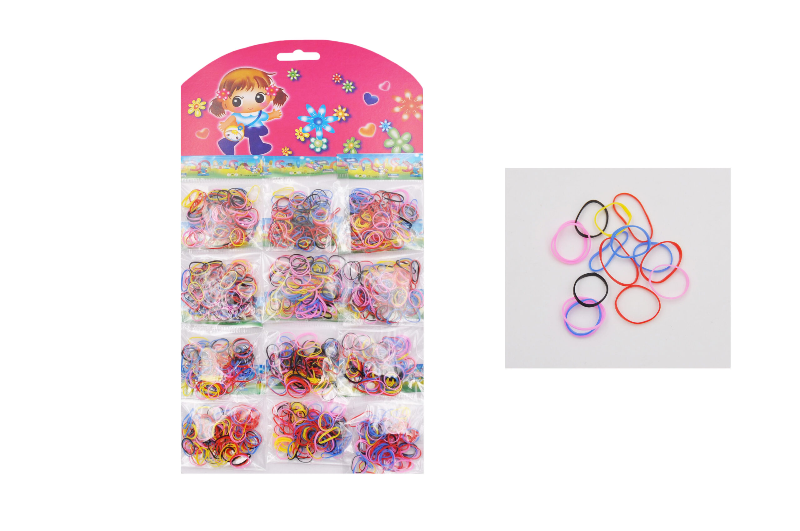 Elastici per acconciature in cauciù su card, disponibile nero, trasparente o colori assortiti, confezione 12 blister, prezzo a blister