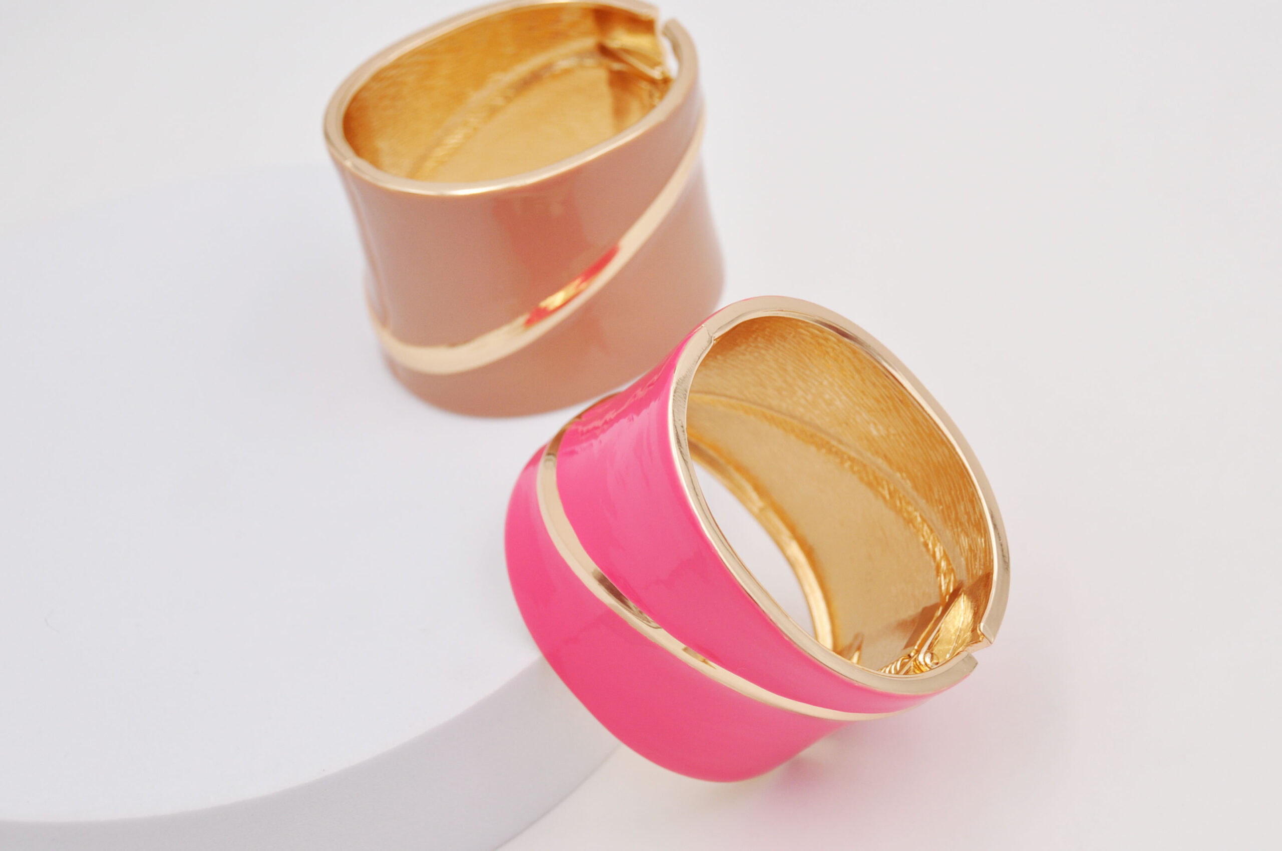 Bracciale rigido smaltato in metallo, disponibile fucsia, bianco o marrone, sacchetto in organza incluso