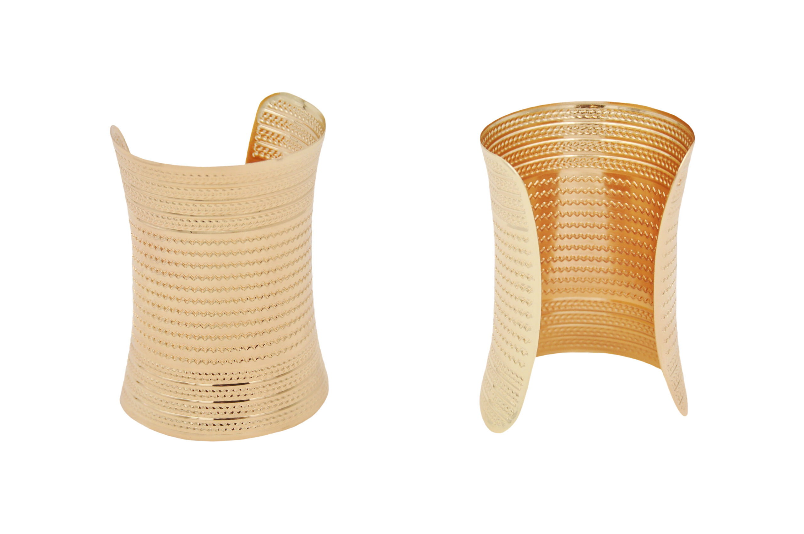 Bracciale schiava in metallo altezza 9,5 cm, disponibile oro o rodio, sacchetto in organza incluso