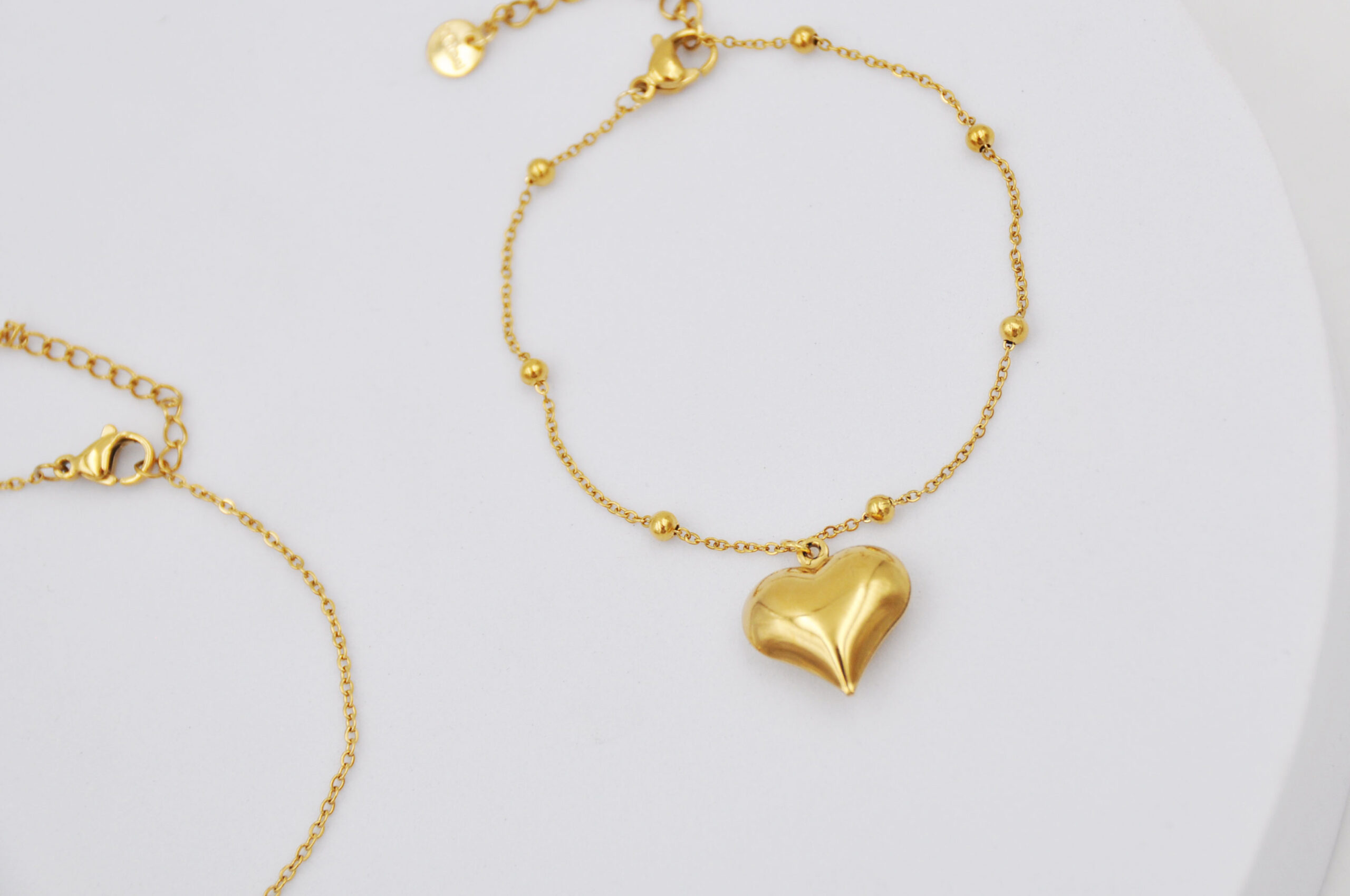 Bracciale con cuore e gnocco in acciaio su tubo, confezione 12 pezzi modelli e colori assortiti, sacchetto in organza incluso