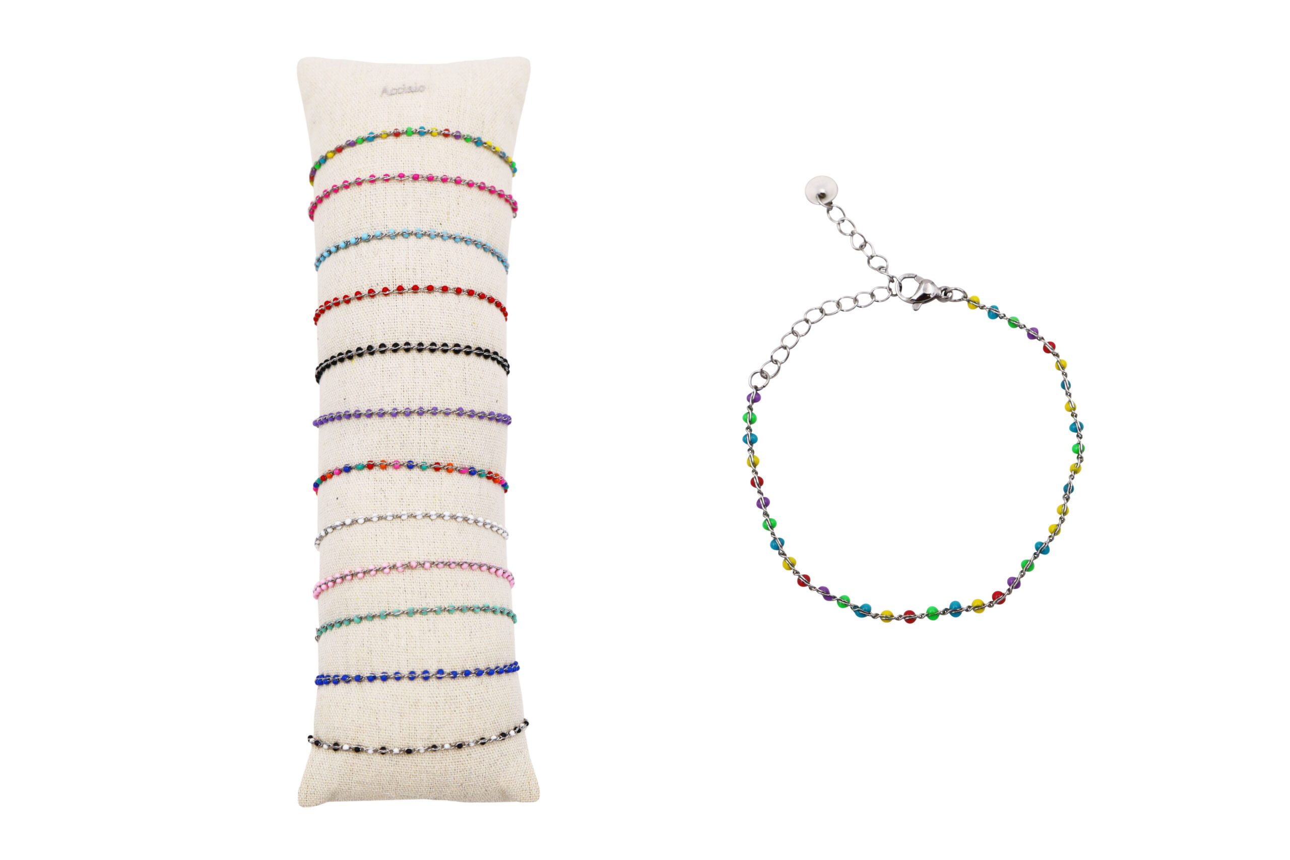 Bracciale in acciaio su tubo, confezione 12 pezzi colori assortiti, sacchetto in organza incluso
