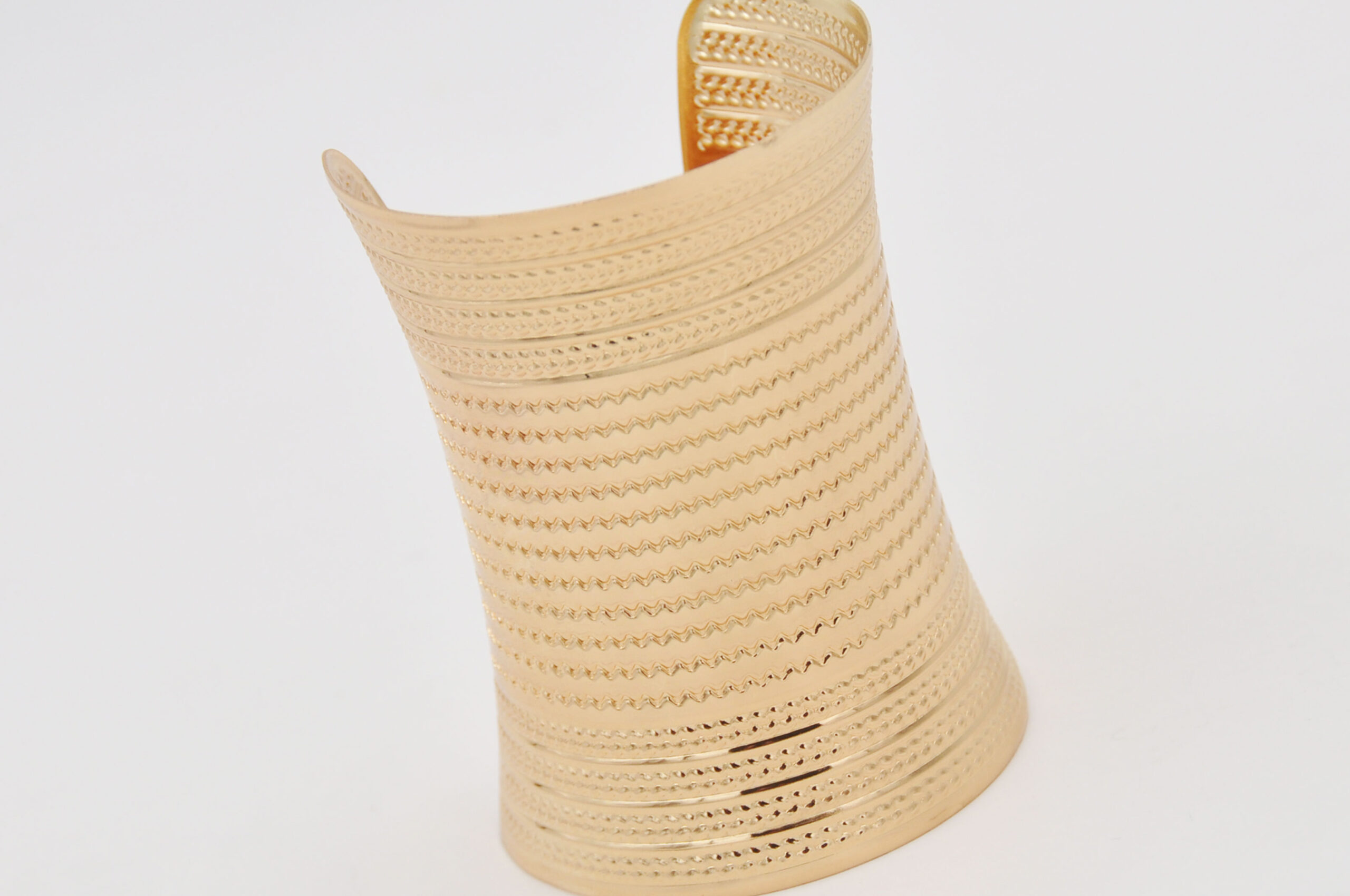 Bracciale schiava in metallo altezza 9 cm, disponibile oro o rodio, sacchetto in organza incluso