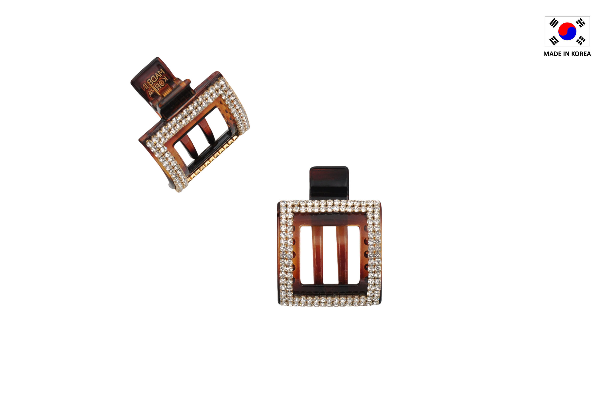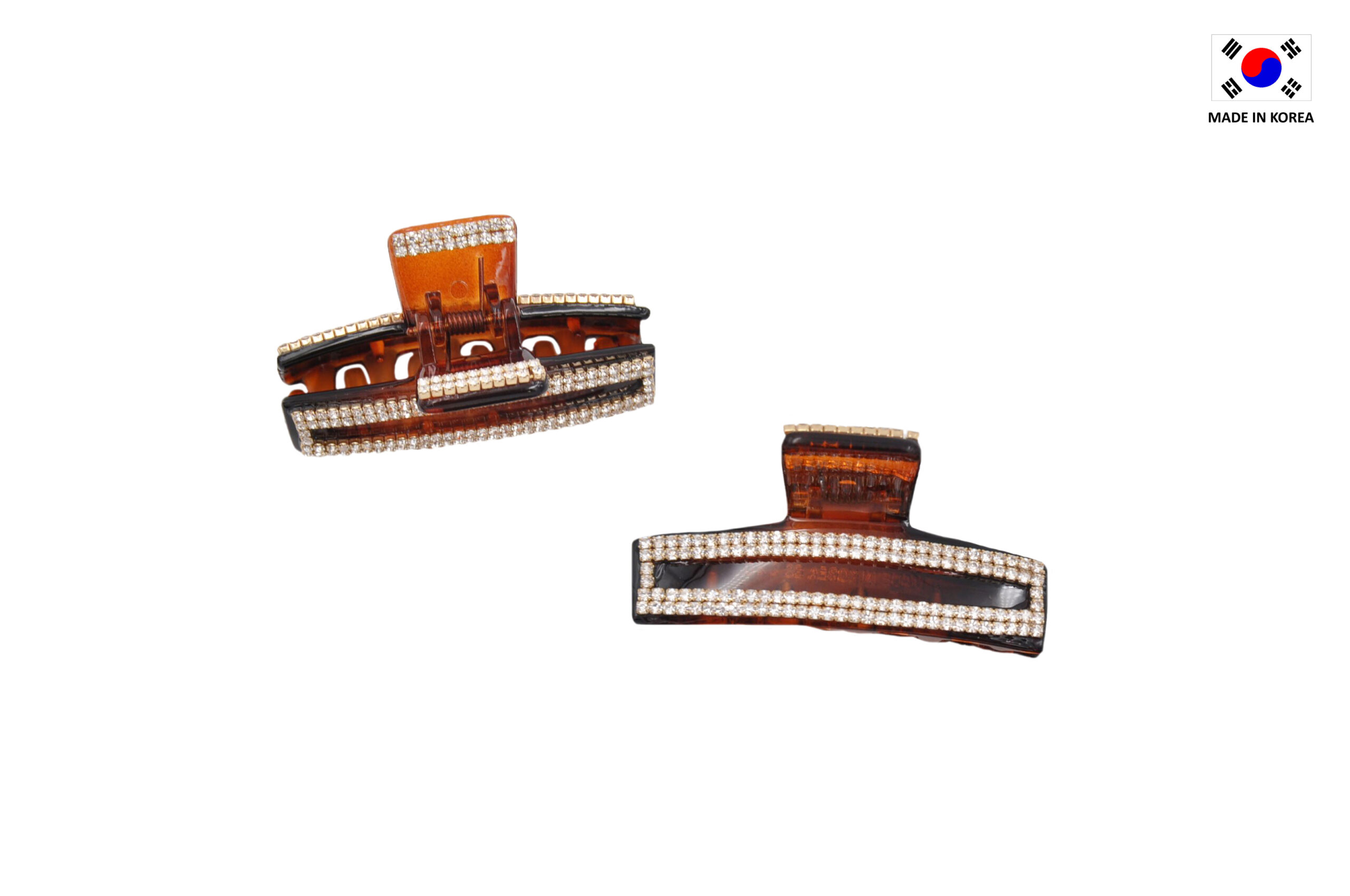 Becco per capelli rettangolo con strass, disponibile tartaruga o nero, dimensione 4 cm, prezzo al pezzo