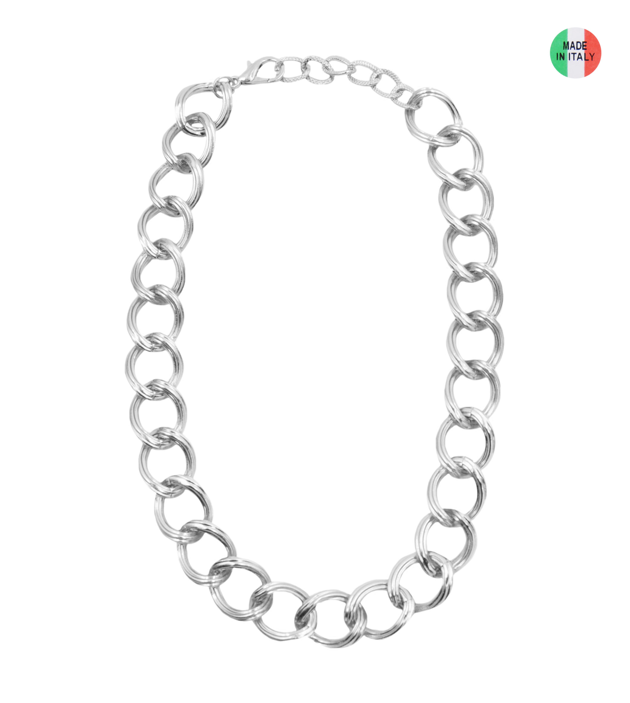 Collana girocollo catena in metallo, disponibile oro o rodio, lunghezza 44 cm, sacchetto in organza incluso
