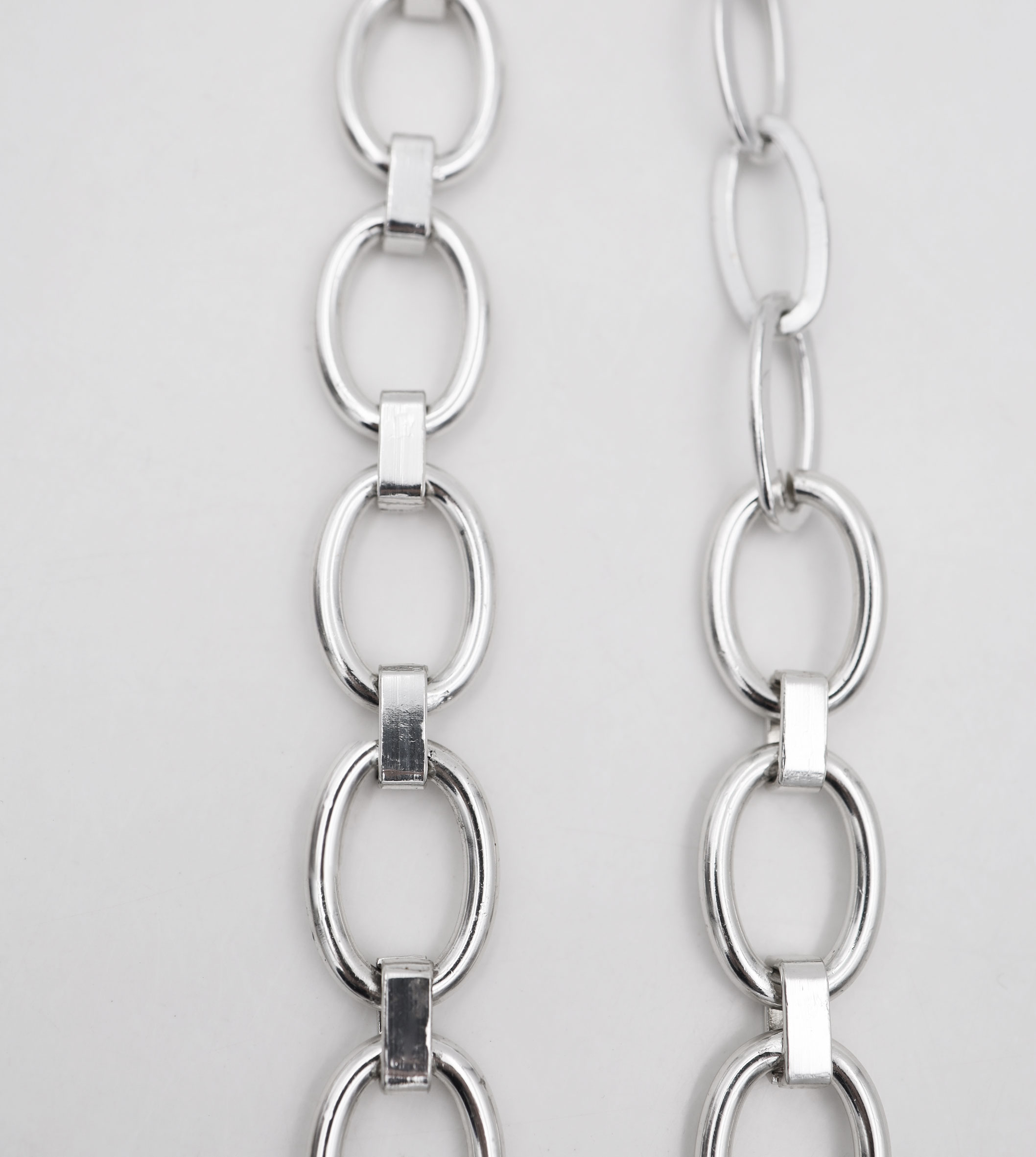 Collana catena in alluminio, disponibile oro o rodio, lunghezza 80 cm, sacchetto in organza incluso