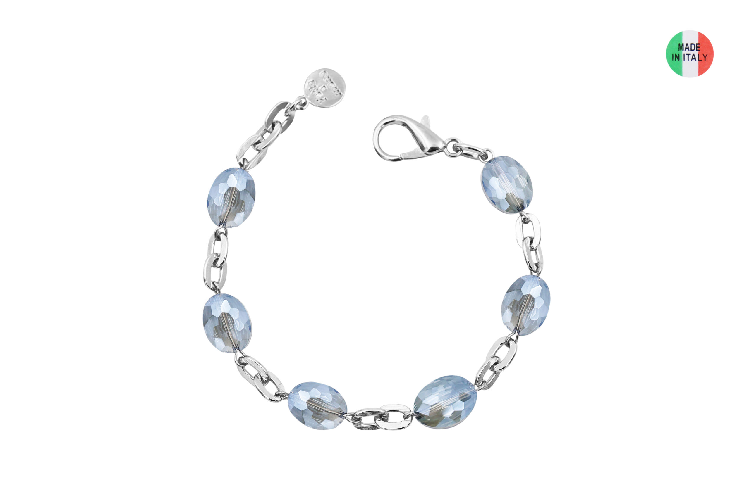 Bracciale catena con cristalli ovali in vetro e metallo, disponibile azzurro, rosa o topazio, sacchetto in organza incluso