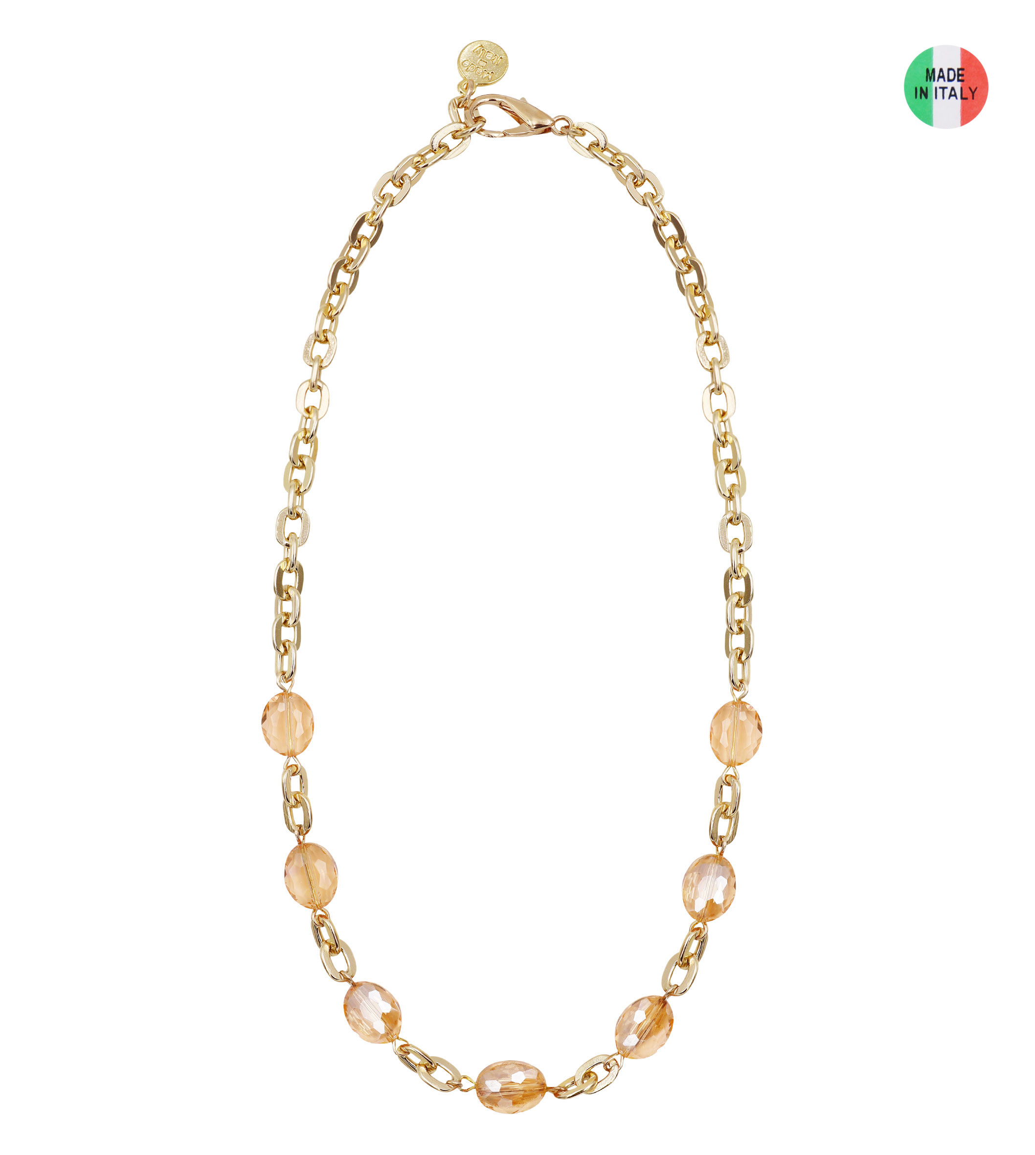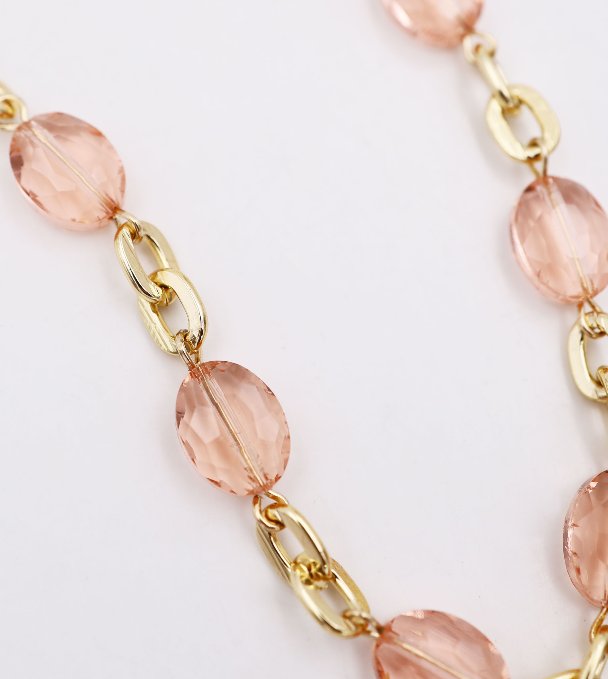 Collana girocollo con cristalli ovali in metallo e vetro, disponibile topazio, rosa o azzurro, lunghezza 45 cm, sacchetto in organza incluso