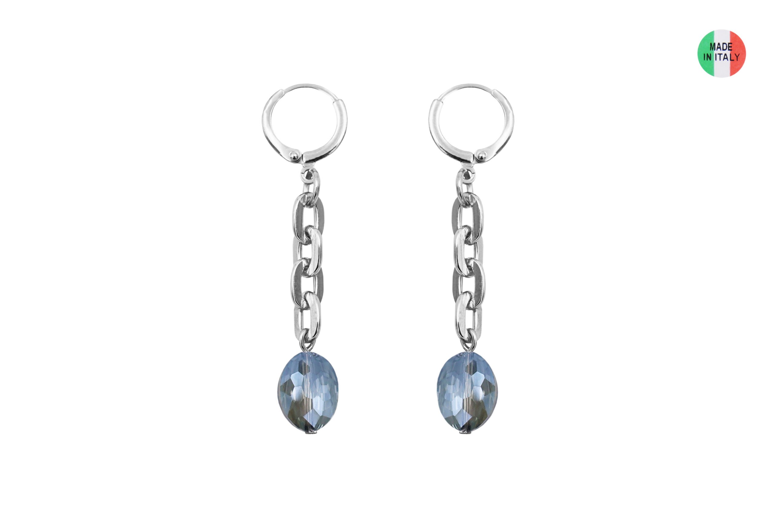 Orecchino cerchio catena con cristalli ovali in vetro e metallo, disponibile azzurro, rosa o topazio, lunghezza 5 cm, prezzo al paio