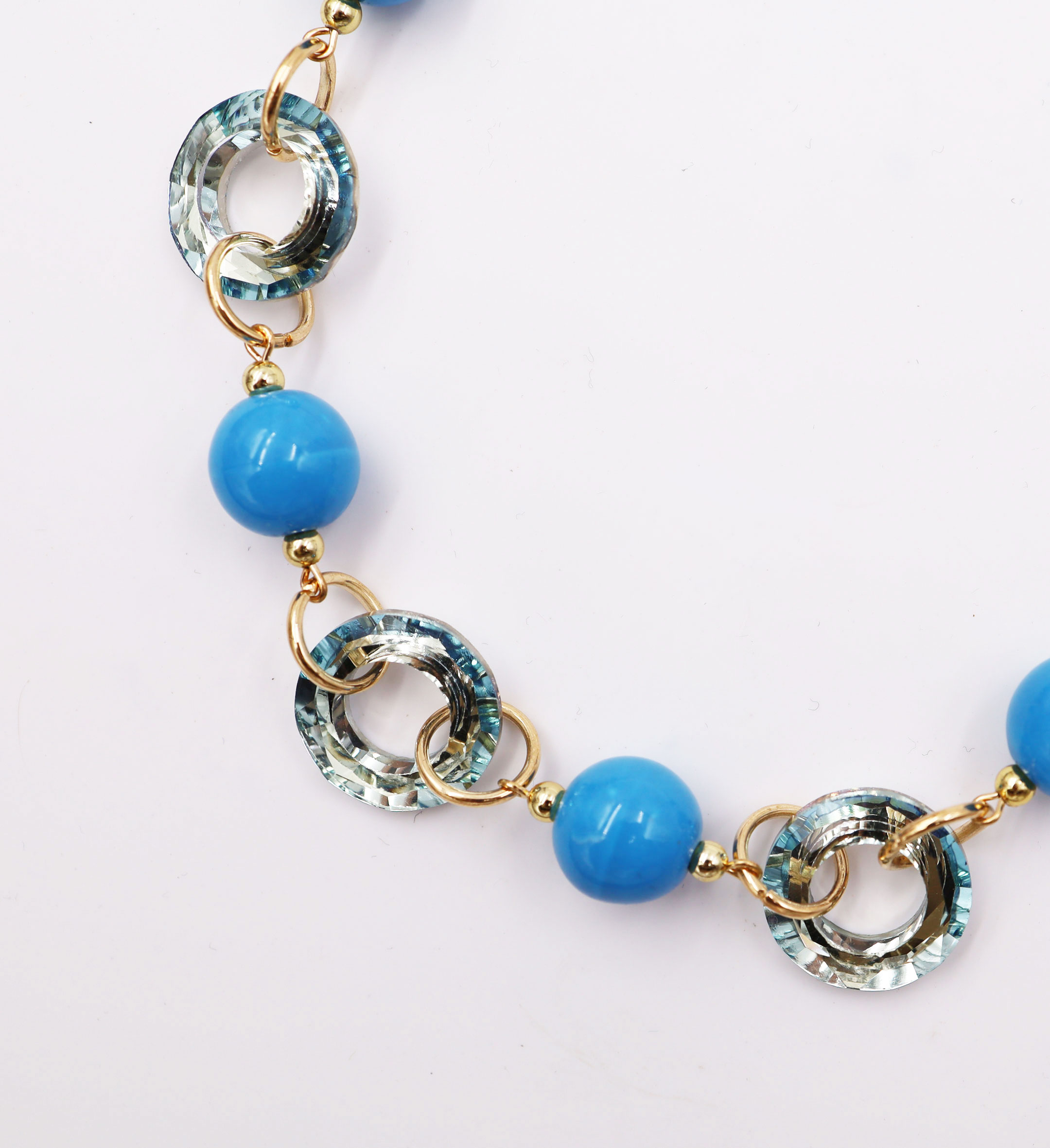 Collana girocollo con cristalli e pietre in metallo, vetro e pietra, disponibile oro/azzurro, oro/beige, oro/viola, rodio/azzurro, rodio/beige e rodio/viola, lunghezza 40 cm, sacchetto in organza incluso