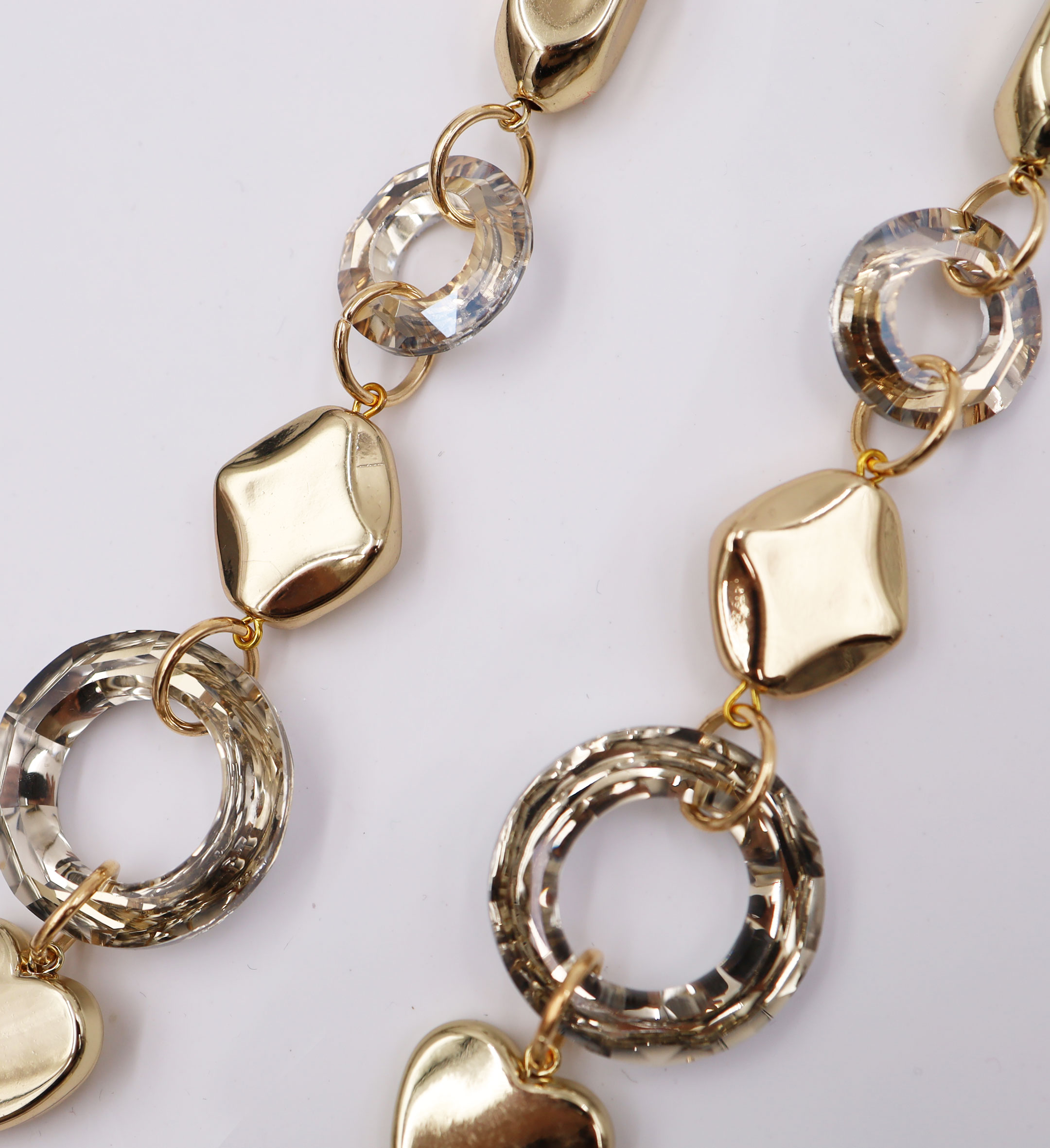 Collana lunga con cristalli in metallo, vetro e pietra, disponibile oro/azzurro, oro/beige, oro/viola, rodio/azzurro, rodio/beige e rodio/viola, lunghezza 90 cm, sacchetto in organza incluso