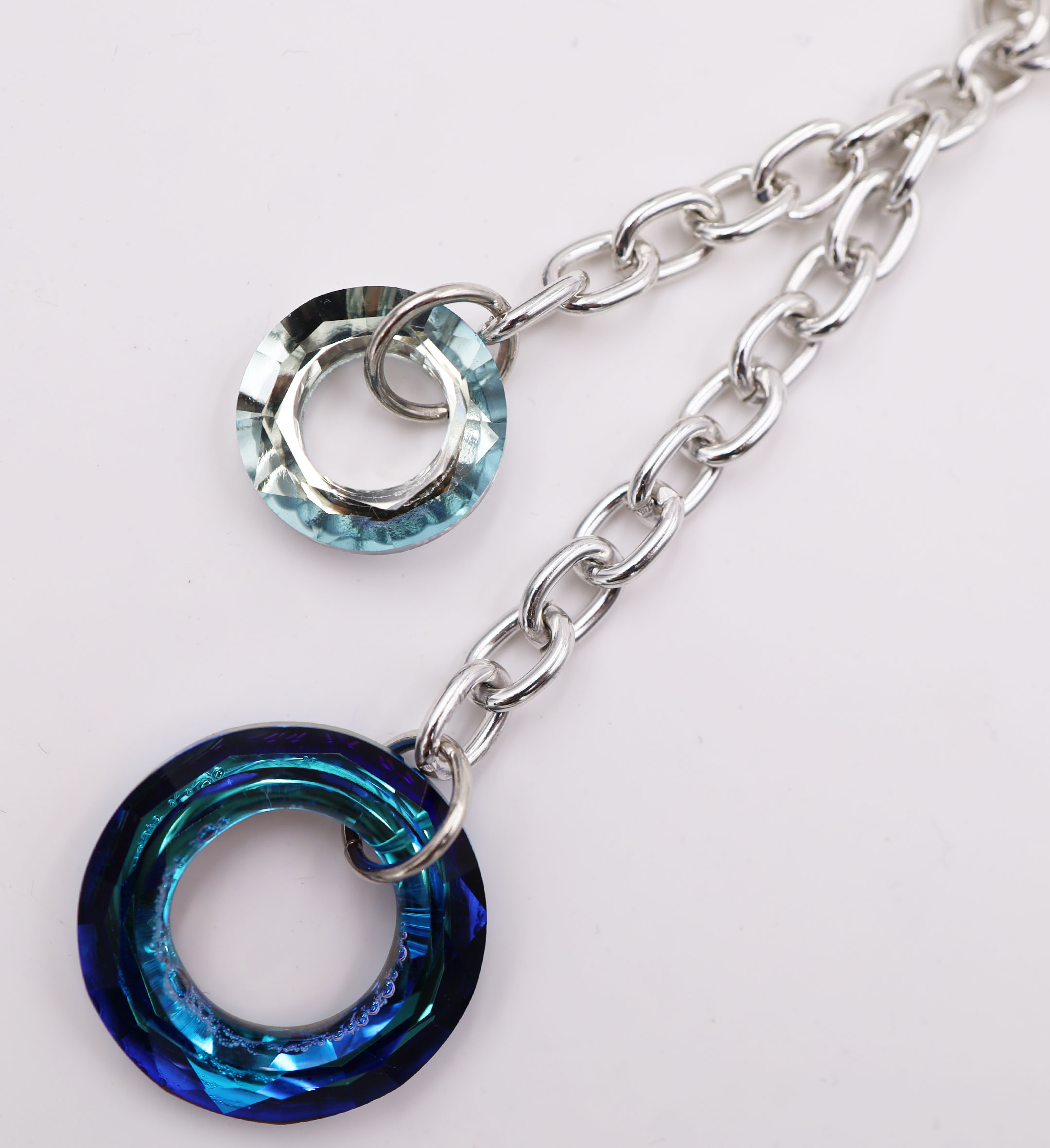 Collana catena con cristalli in metallo e vetro, disponibile oro/azzurro, oro/beige, oro/viola, rodio/azzurro, rodio/beige e rodio/viola, lunghezza 114 cm, sacchetto in organza incluso