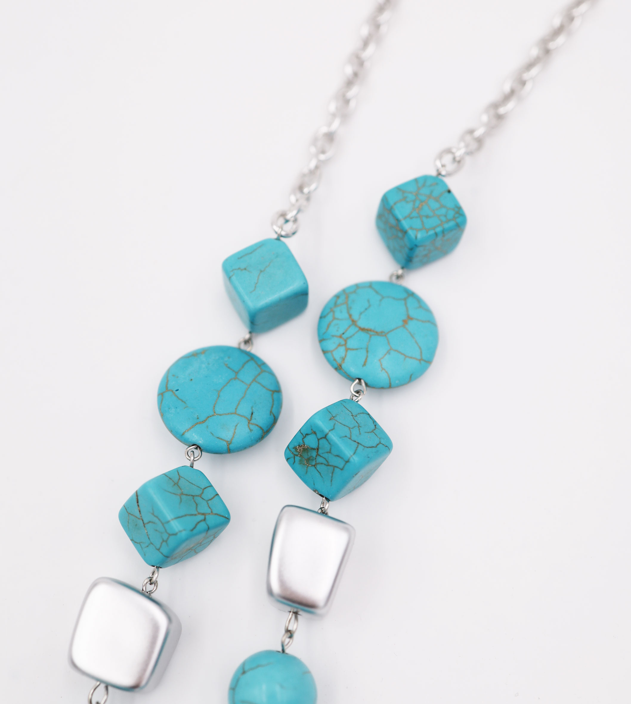 Collana catena con particolari in pietra, disponibile beige o azzurro, sacchetto in organza incluso