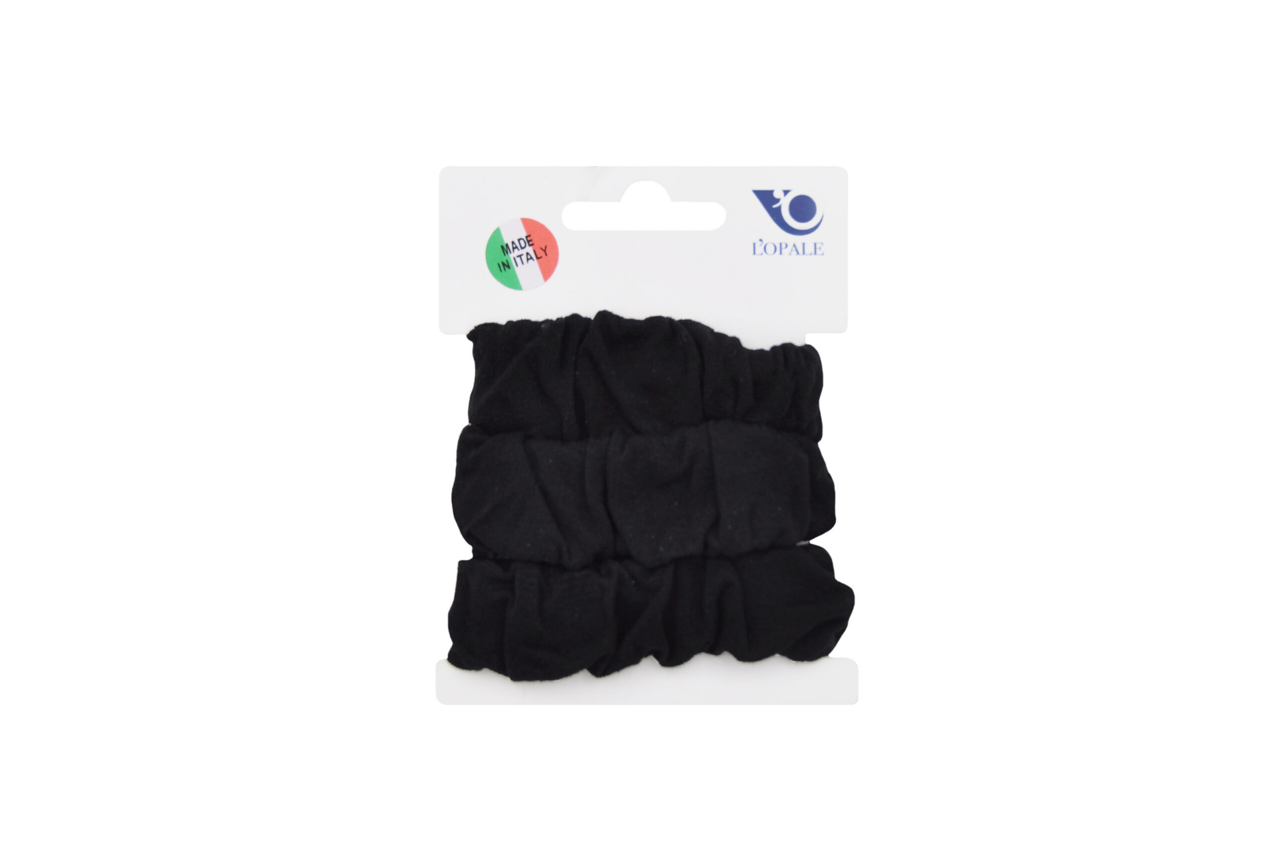 Blister 3 elastici neri in tessuto, confezione 6 blister, disponibile nero o colori invernali, diametro 4 cm, prezzo a blister