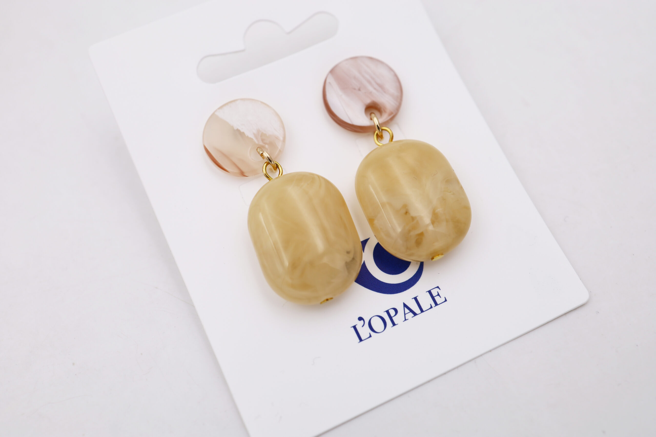Orecchino perno con particolare in resina, lunghezza 4,5 cm, sacchetto in organza incluso