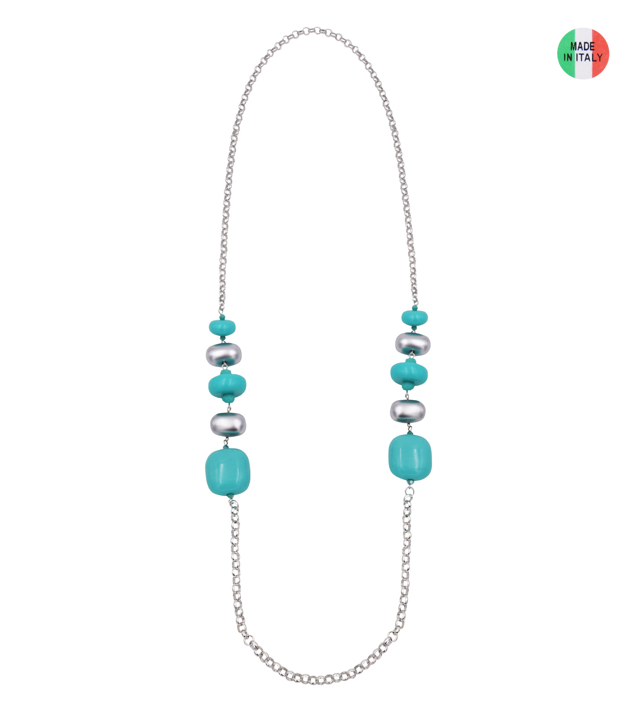 Collana con sassi in ceramica, metallo, vetro e plastica, lunghezza 100 cm, sacchetto in organza incluso