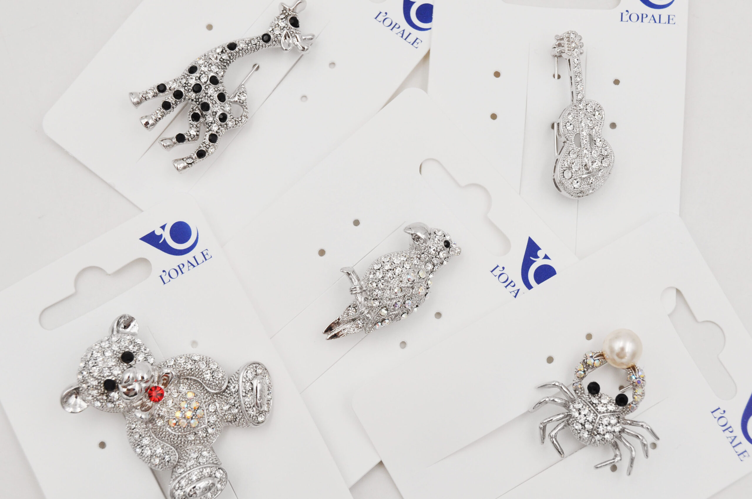 Card due spille da balia in metallo e vetro, confezione 3 card modelli assortiti, lunghezza 7 cm